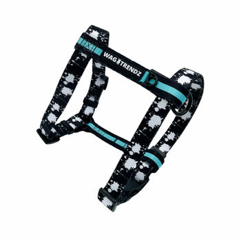 Combining a monochrome pattern with a striking teal accent, this harness merges fashion and creativity, allowing your dog to make a bold artistic statement during their daily walks.