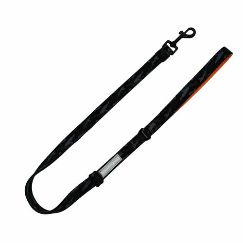 This leash features a bold black and gray camo pattern accented with a striking orange, making it the perfect choice for pet owners who prioritize both fashion and practicality.