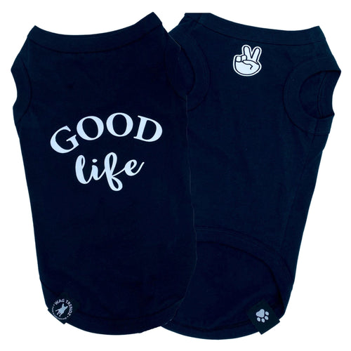 The Good Life Dog T-Shirt is an exclusive and trendy design for dogs that embody the Good Life vibe.