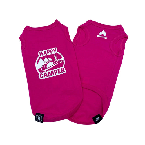 Gear up your adventurous pup with the Happy Camper Dog T-Shirt, available in two vibrant colors - blue and pink.