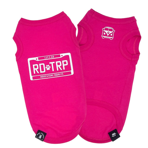 Gear up your furry companion for the ultimate adventure with the Road Trip Dog T-Shirt, available in black or pink and two unique designs.