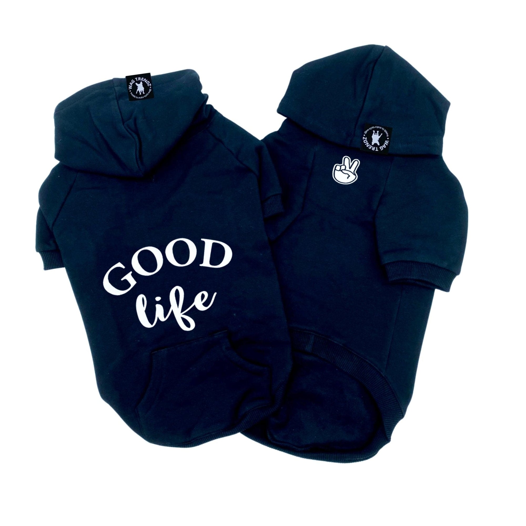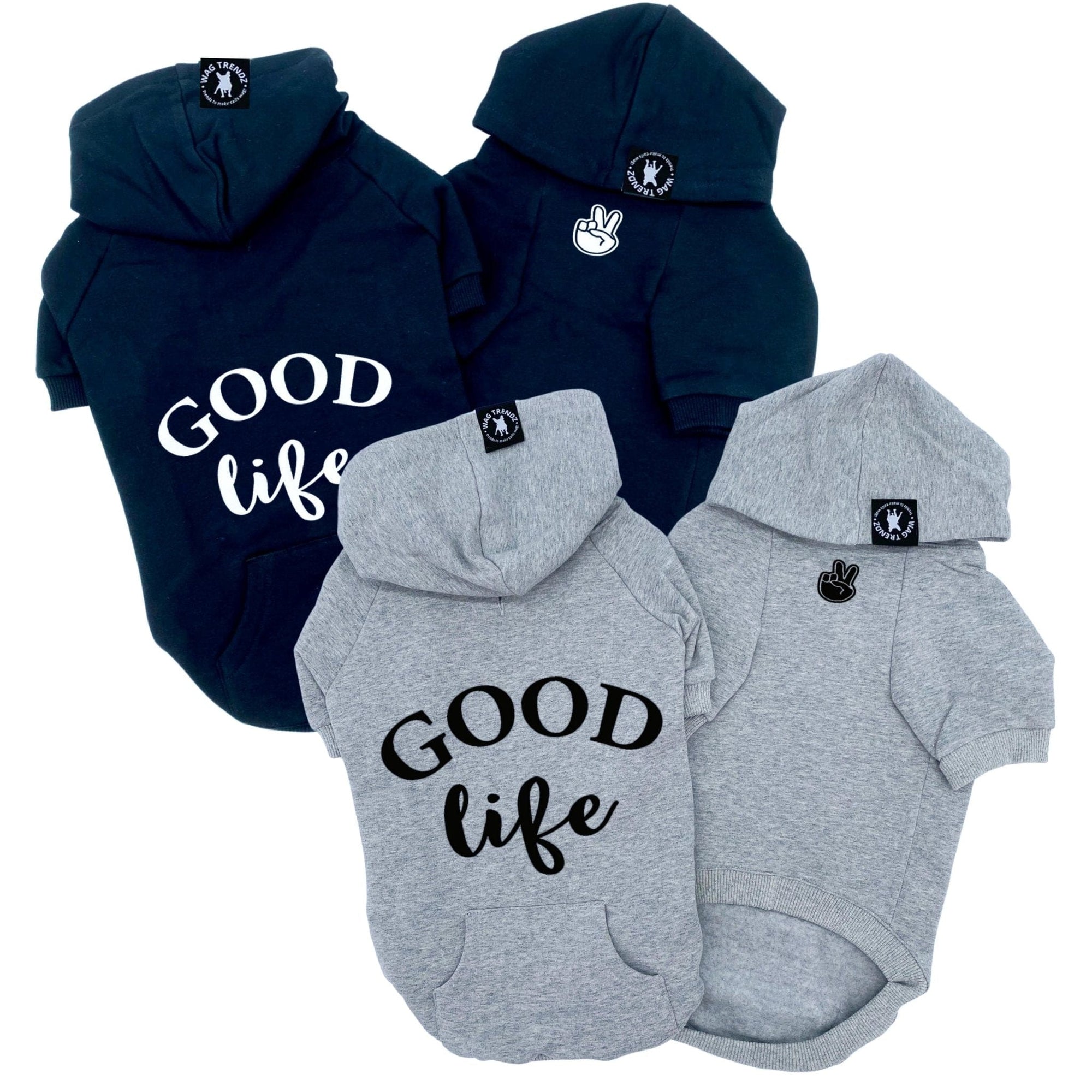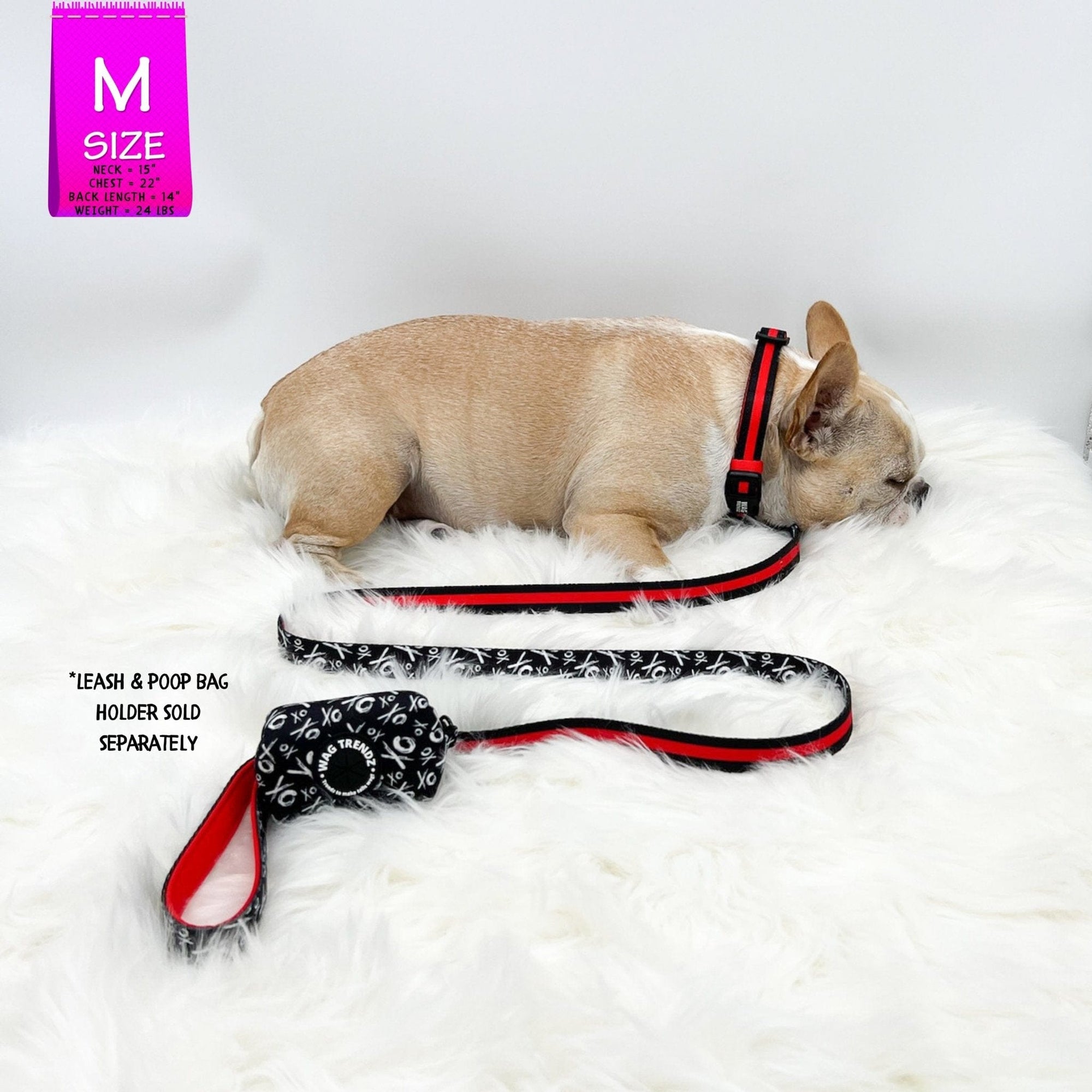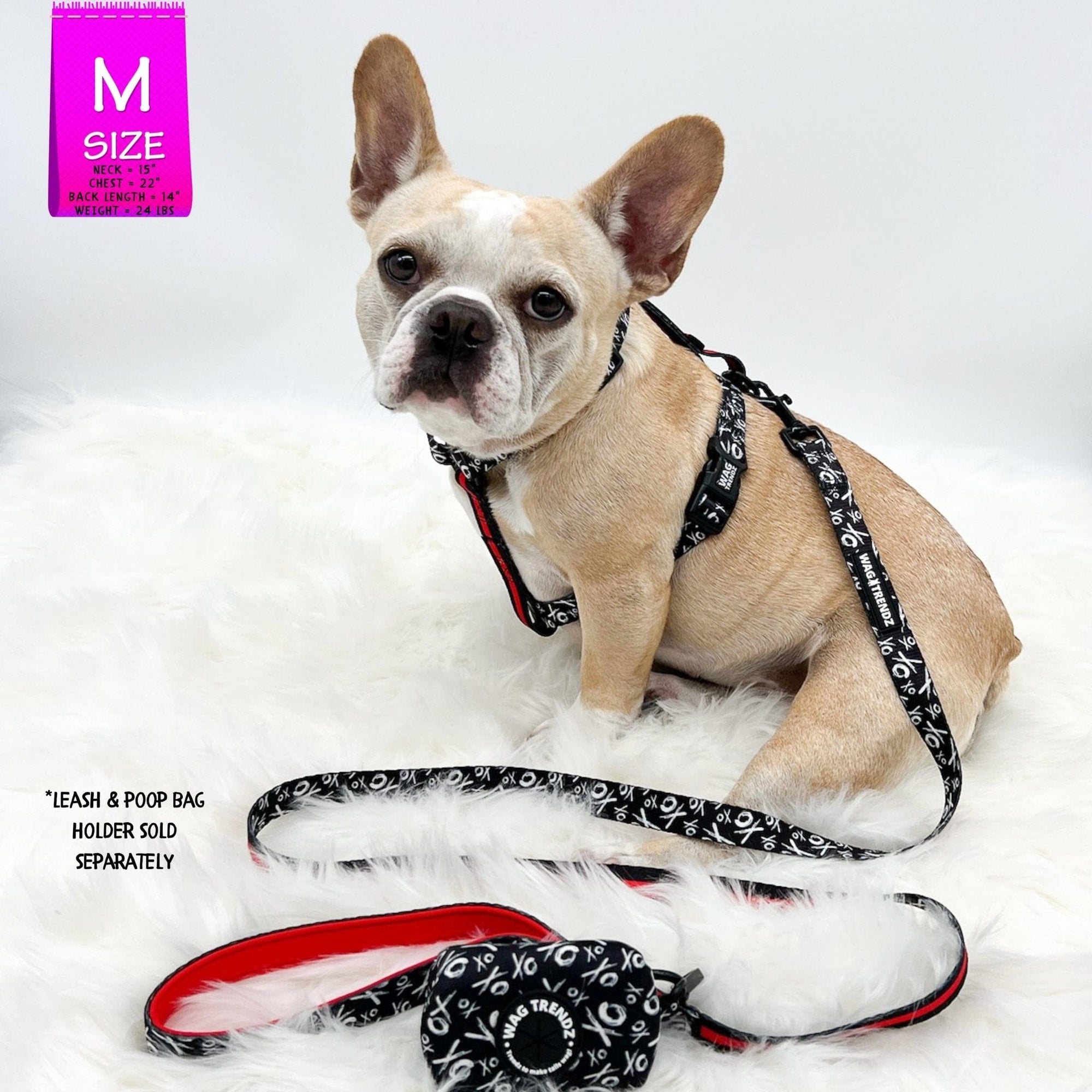 Pair the festive Santa Paws dog hoodie with the cheerful XO harness, collar, and leash. Don't forget pawsome stocking stuffers like poop bag holders and buddies for a stylish and joyous holiday ensemble for your beloved companion.
