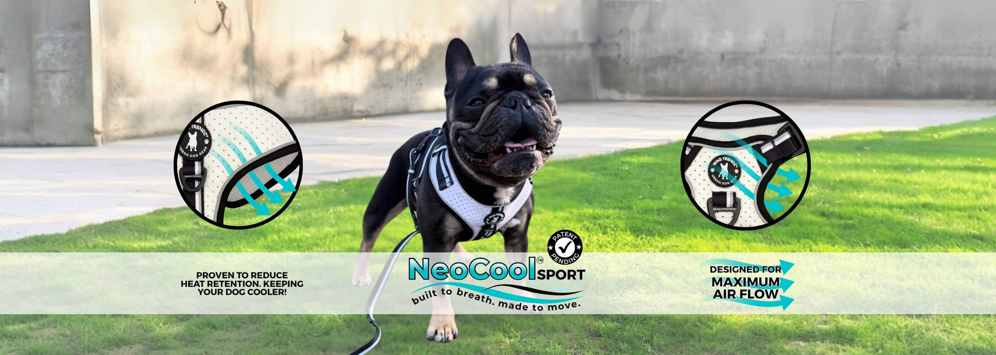 Discover the NeoCool™ Sport Collection by Wag Trendz® - featuring the first patent-pending dog harness made with breathable perforated neoprene for all-day cooling comfort.