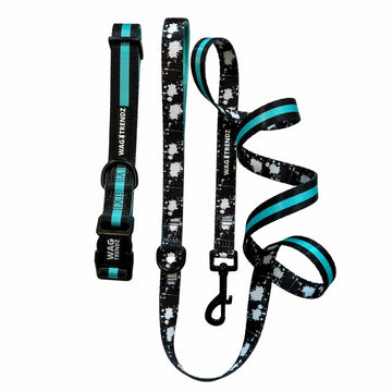 Tap into your artsy side or express your appreciation for modern art with the Teal Splatter Swagger Dog Harness and matching accessories.