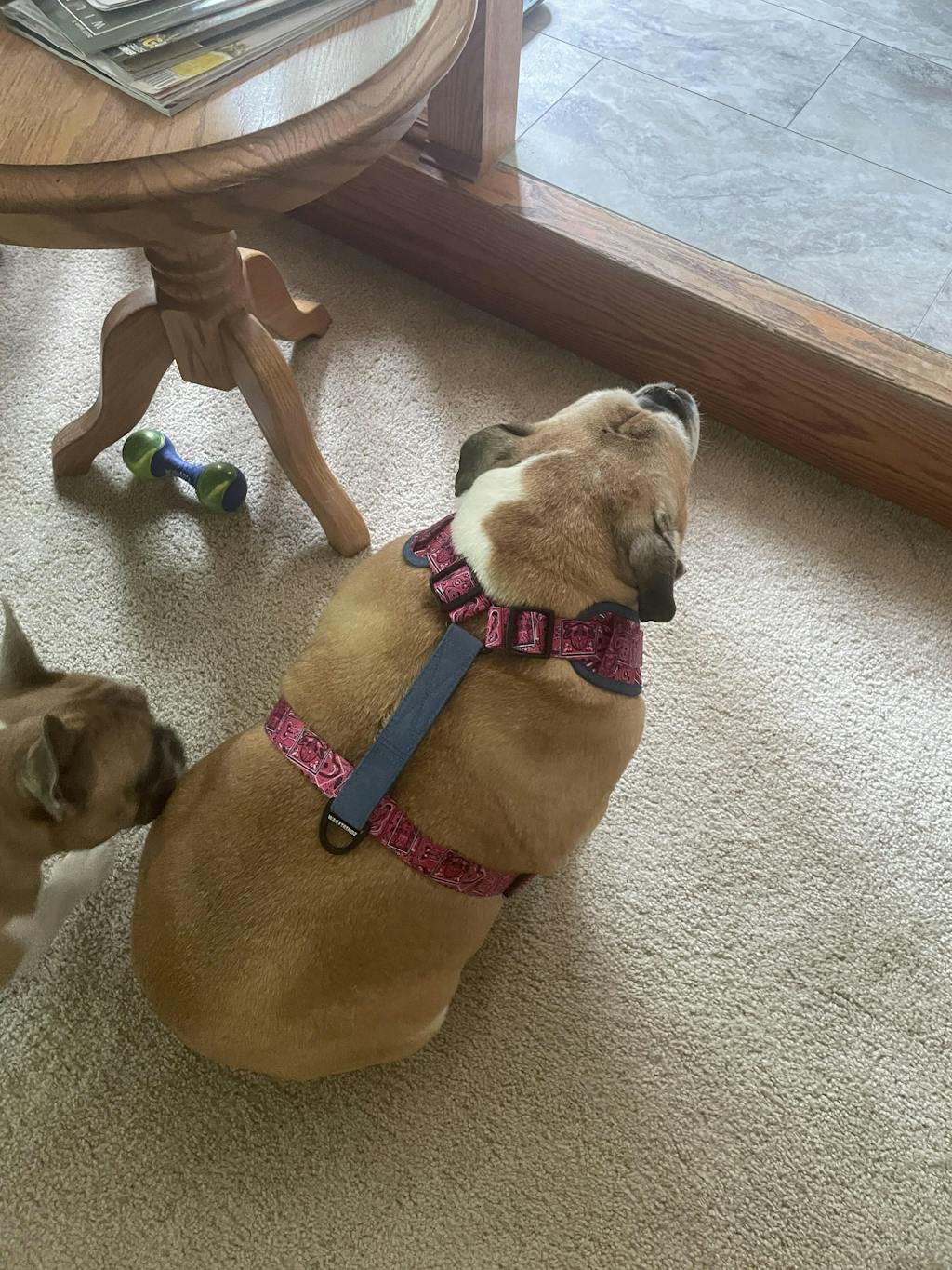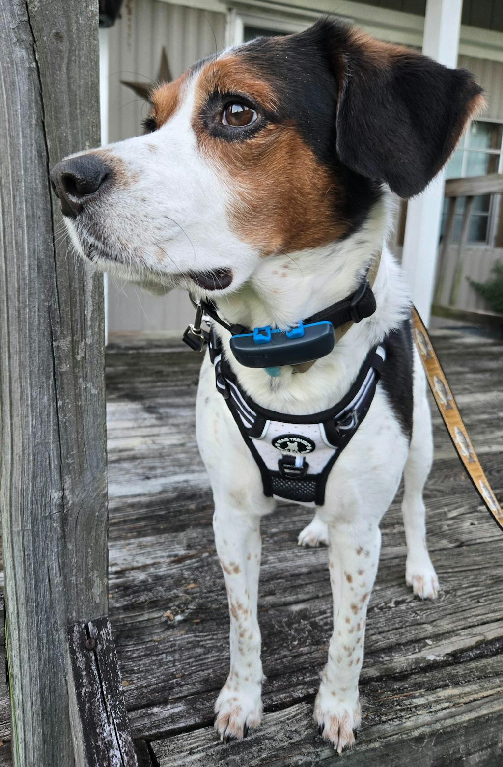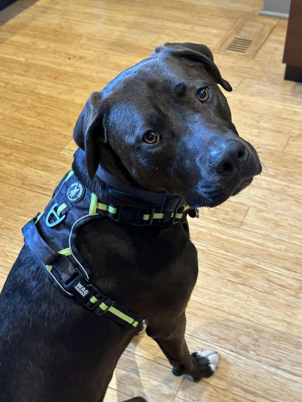 Love everything about this harness! Love the stable handle, love the clip at the neck, love the reflective piping, love multiple leash connections. Love the fact he can easily move and stays cool in this harness. This harness is chef's kiss!!