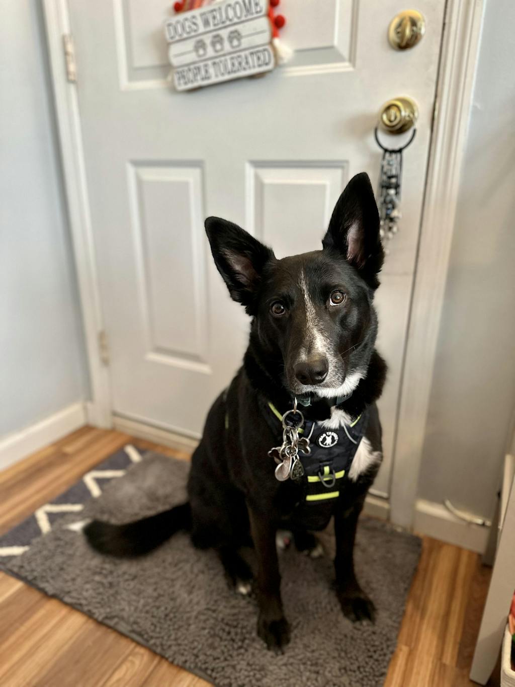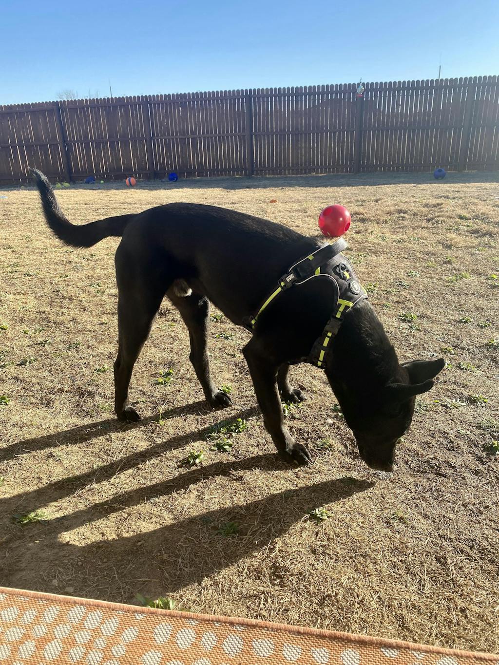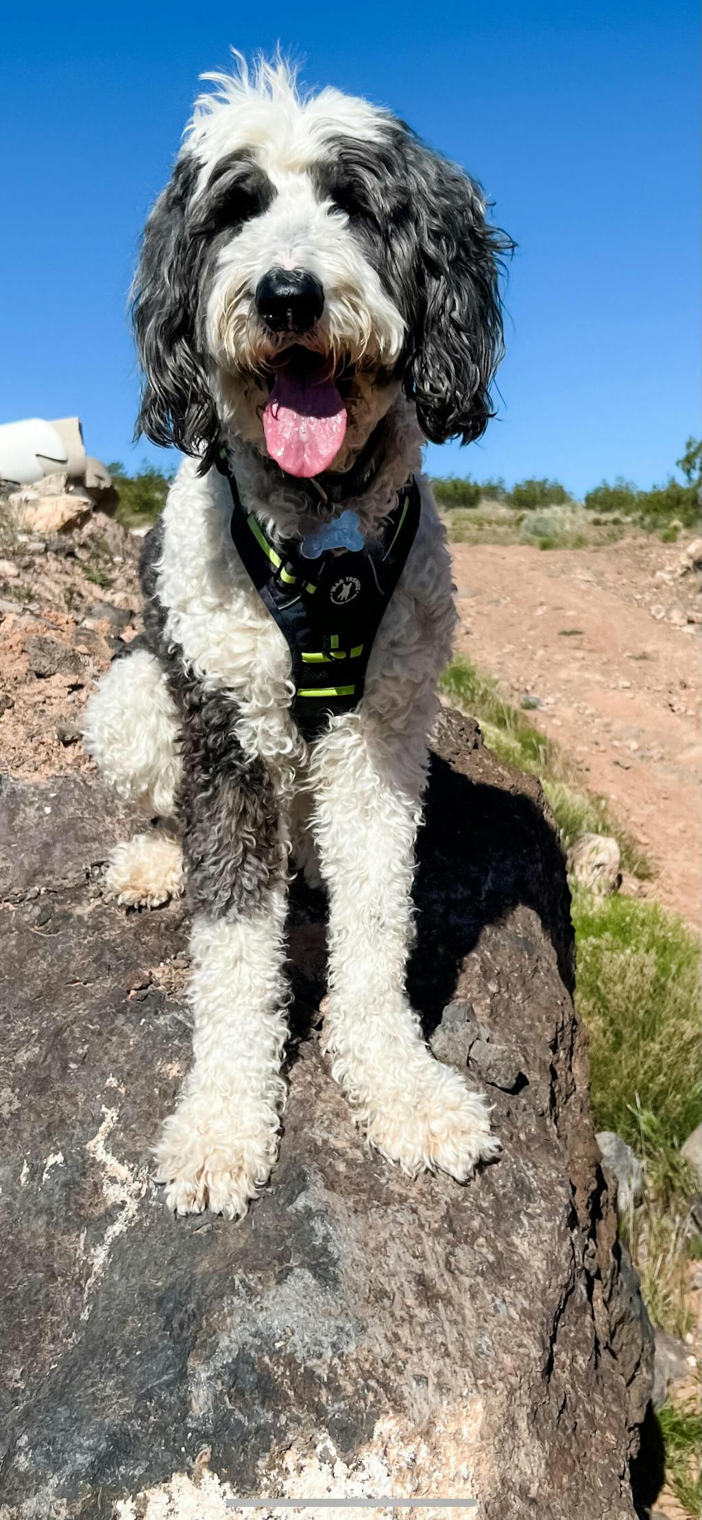 Love everything about this harness! Love the stable handle, love the clip at the neck, love the reflective piping, love multiple leash connections. Love the fact he can easily move and stays cool in this harness. This harness is chef's kiss!!