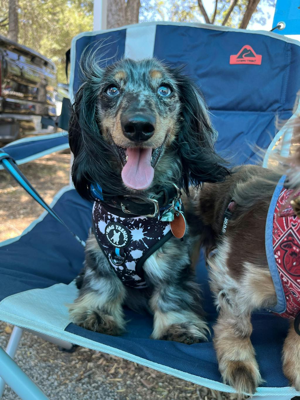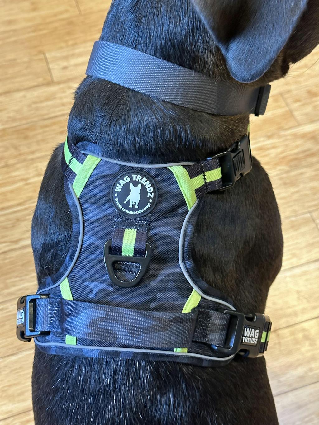 I am absolutely thrilled with my WagTrendz Camo harness with a handle! The handle is a fantastic feature, especially when my pup rides in the side by side. It allows us to strap him in securely and gives us peace of mind knowing he is safe. The harness itself is sturdy and well-made, and I appreciate how easy it is to use. Overall, I highly recommend this harness to any pet owner who wants a reliable and practical option for their furry companion. Great for an adventure pup !!