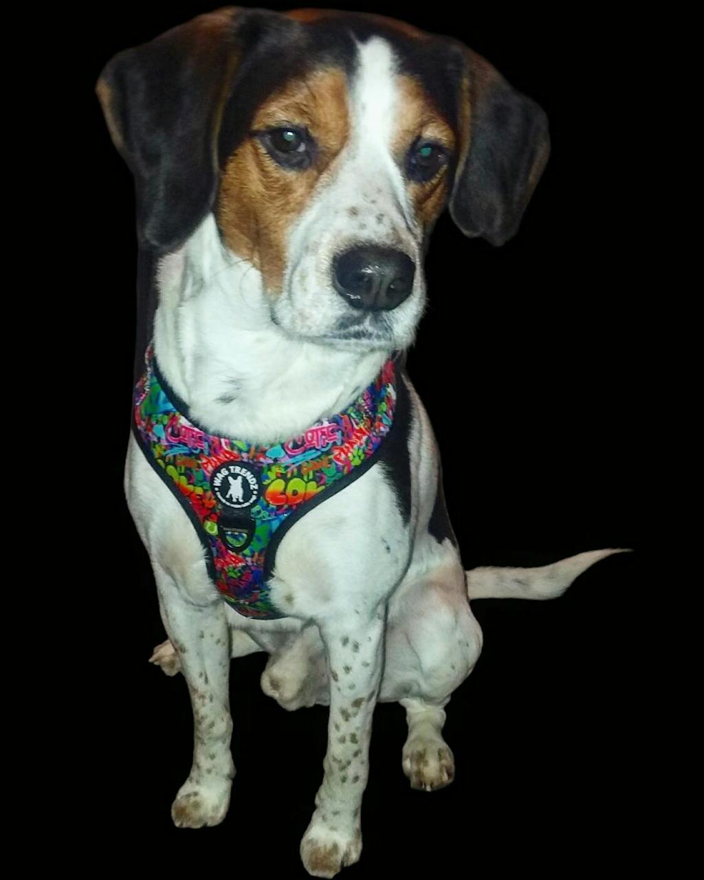 Bandana Bougee is a absolute must have! Couple of changes from our street graffiti harness and I'm in awe because I didn't think it could get better. Love the triangle at the back lays extremely nice. Love the wider strap around the waist because I do have a backer upper! Seriously this harness fits my boy like a glove!!! These are perfect if you have that narrow deep chested baby such as my own. Being American Foxhound it was just hard to find a harness that fit right everywhere but I was determined and I succeeded. No other harness for us except wag trendz now!!