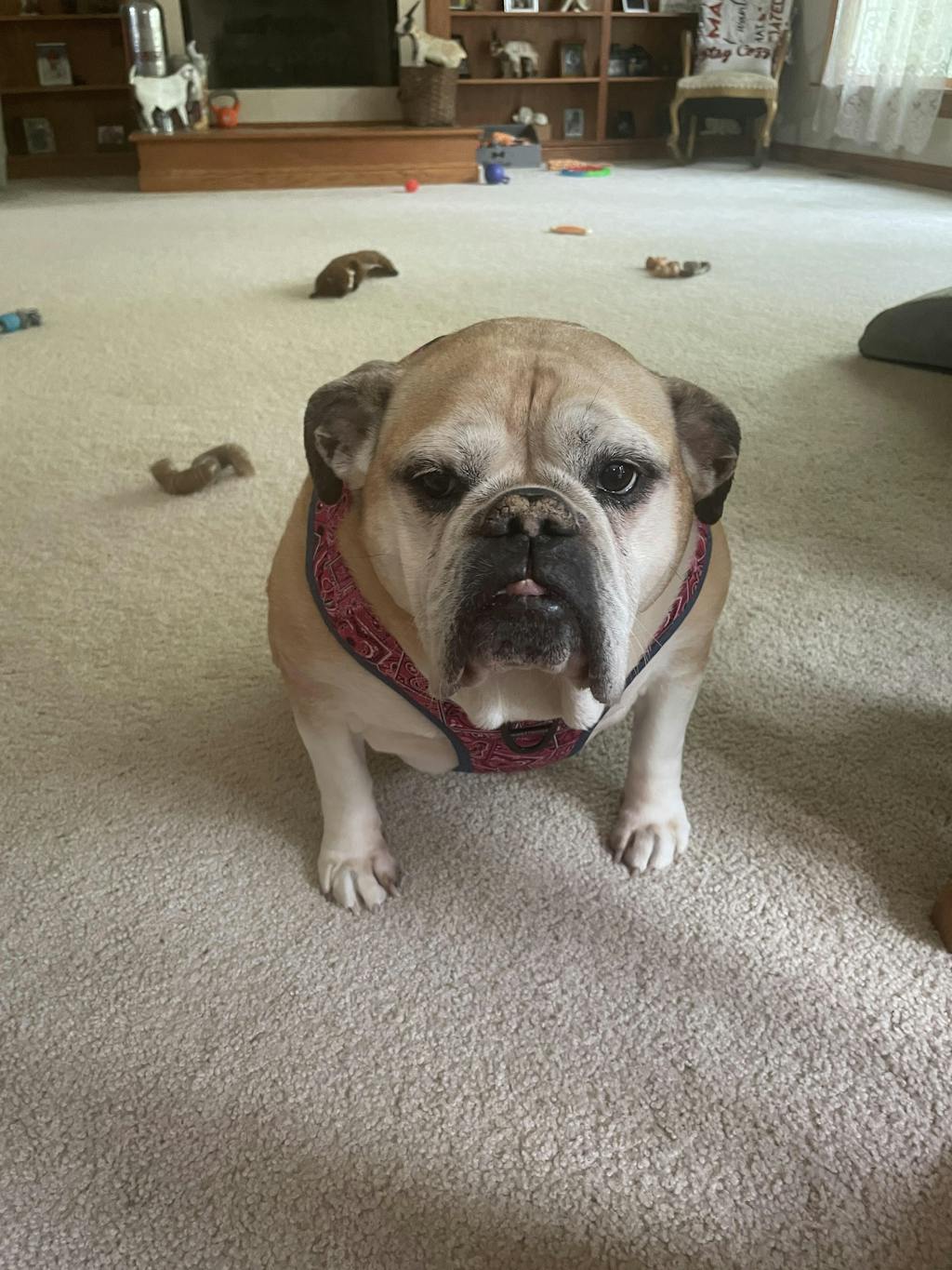 The perfect fit for my English Bulldogs! However, if my chubby girlgains another inch we will need you to make XXL…lol