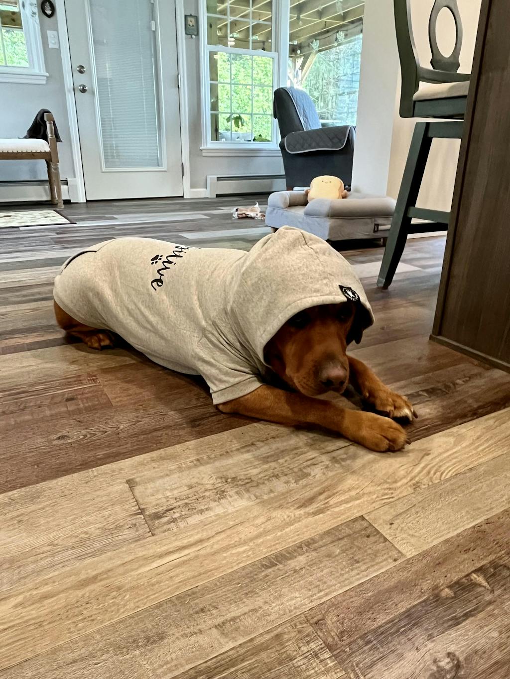 My pup loves this hoodie! It’s so soft and cozy! He has some anxiety, and putting on the hoodie helped him relax as well. He looks super handsome in it and got lots of compliments at the park! Definitely the softest hoodie I’ve ever felt, paws crossed you guys make human sized ones some day! 🤪