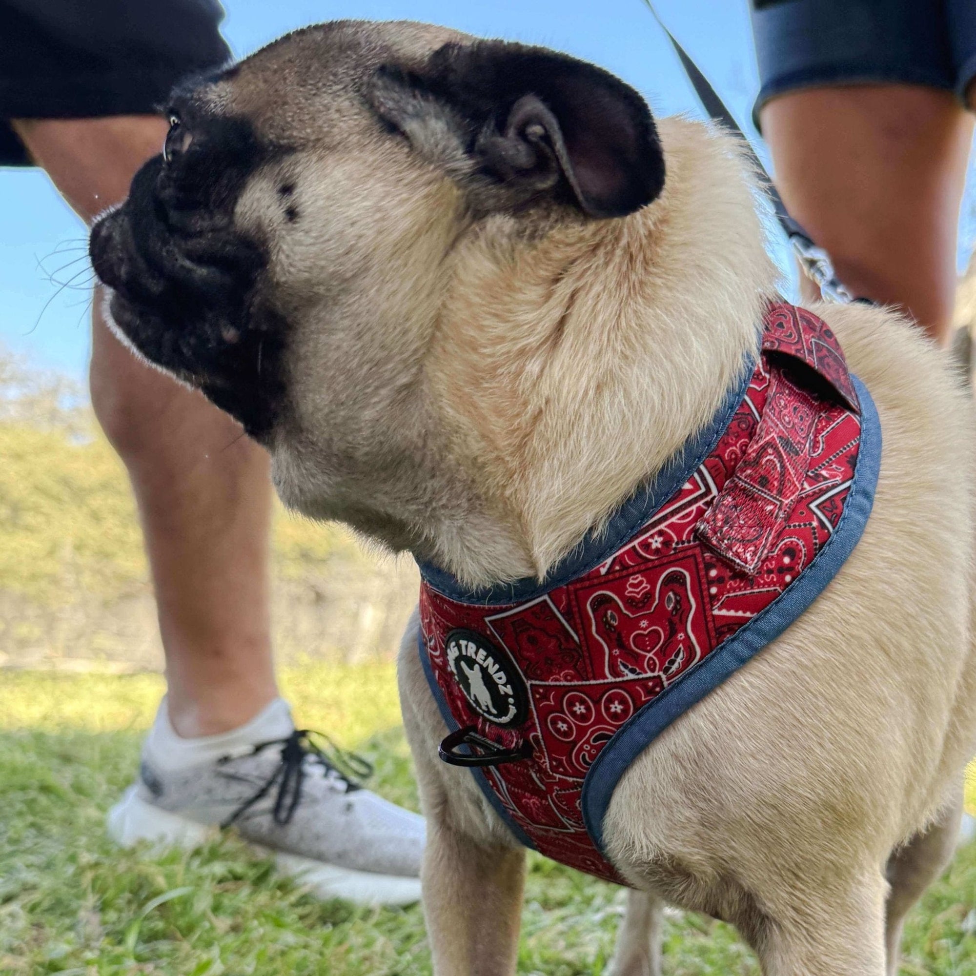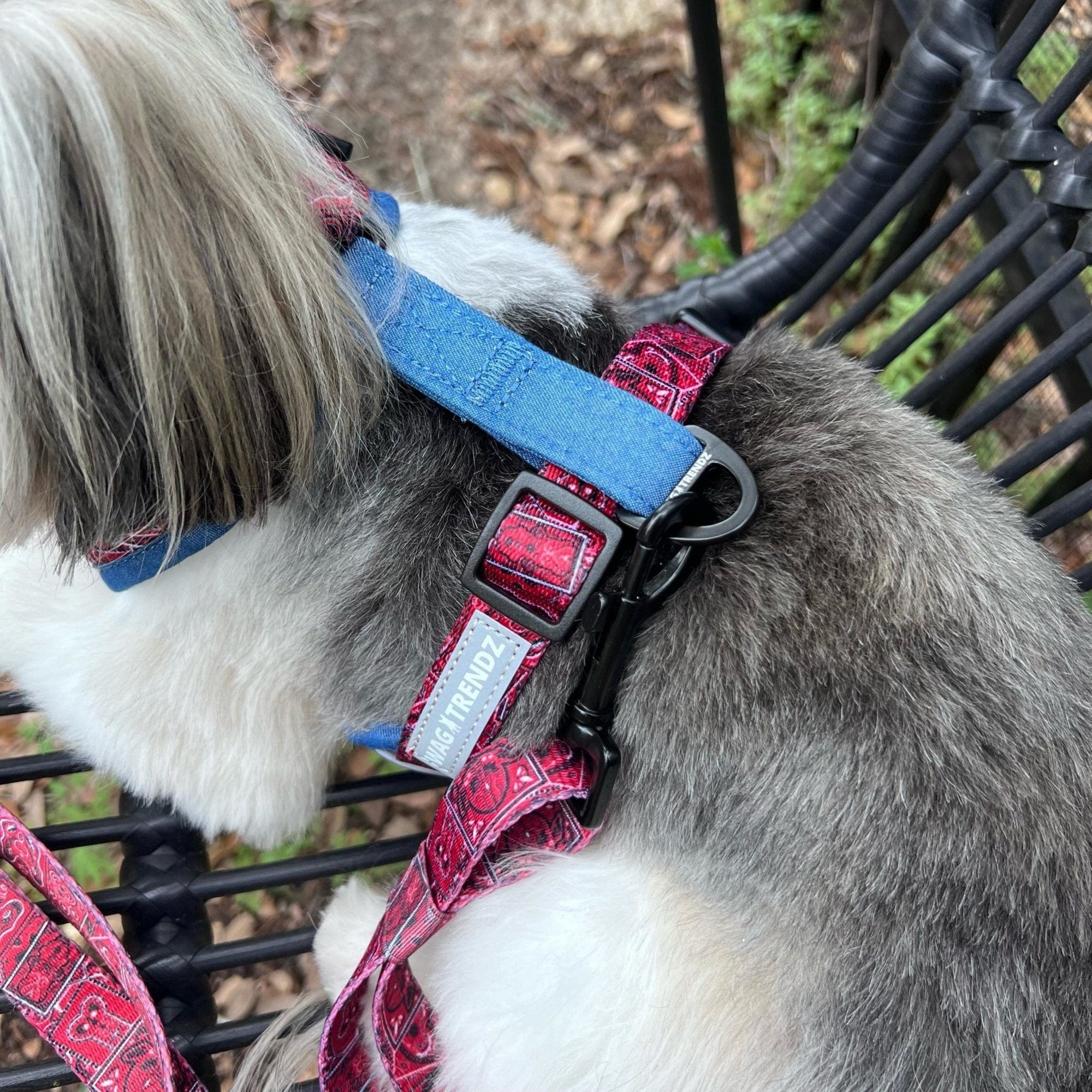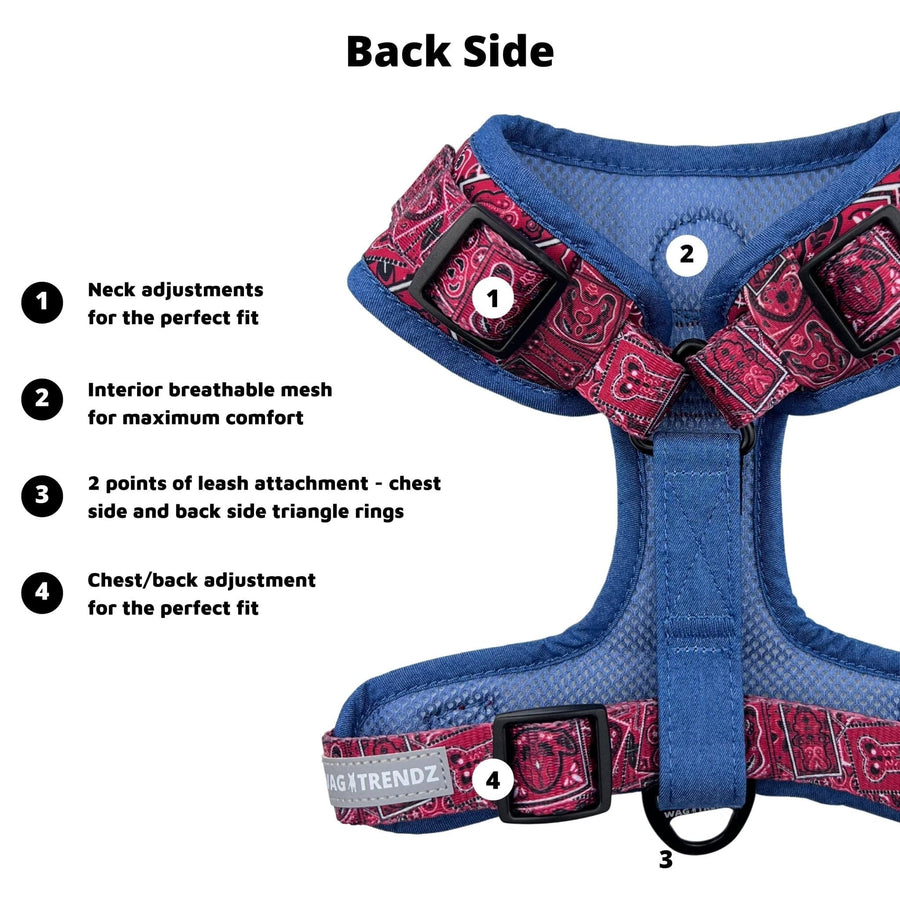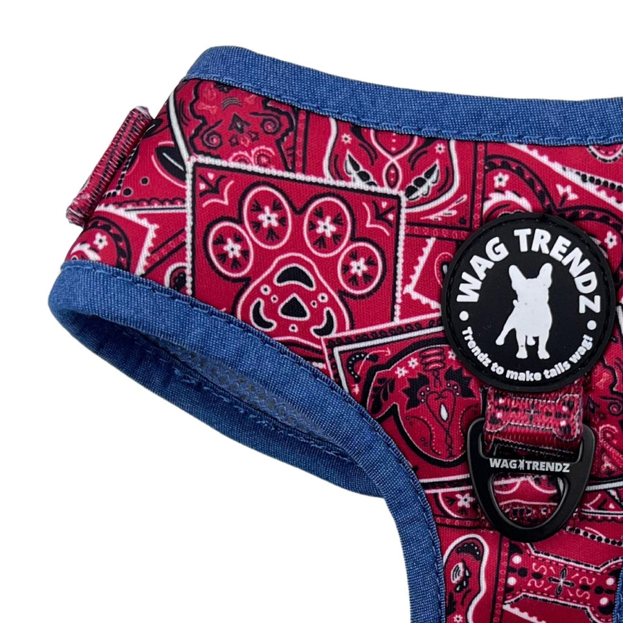 Behold the ultimate gear for your stylish furry friend - the Red Bandana Boujee Dog Harness and Leash Set!