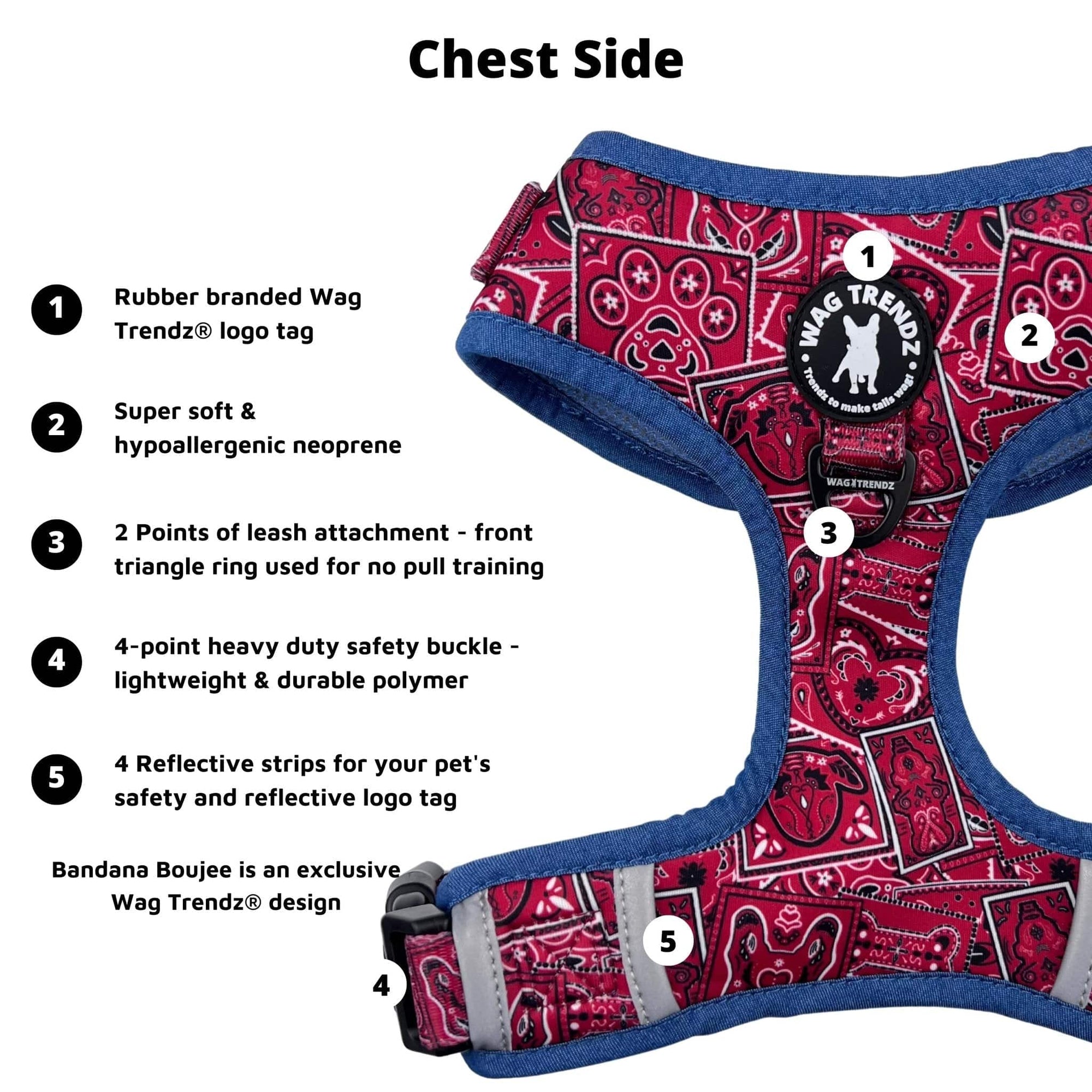 With the Red Bandana Boujee Dog Harness and Leash Set, your pup will look and feel like the coolest dog on the block.