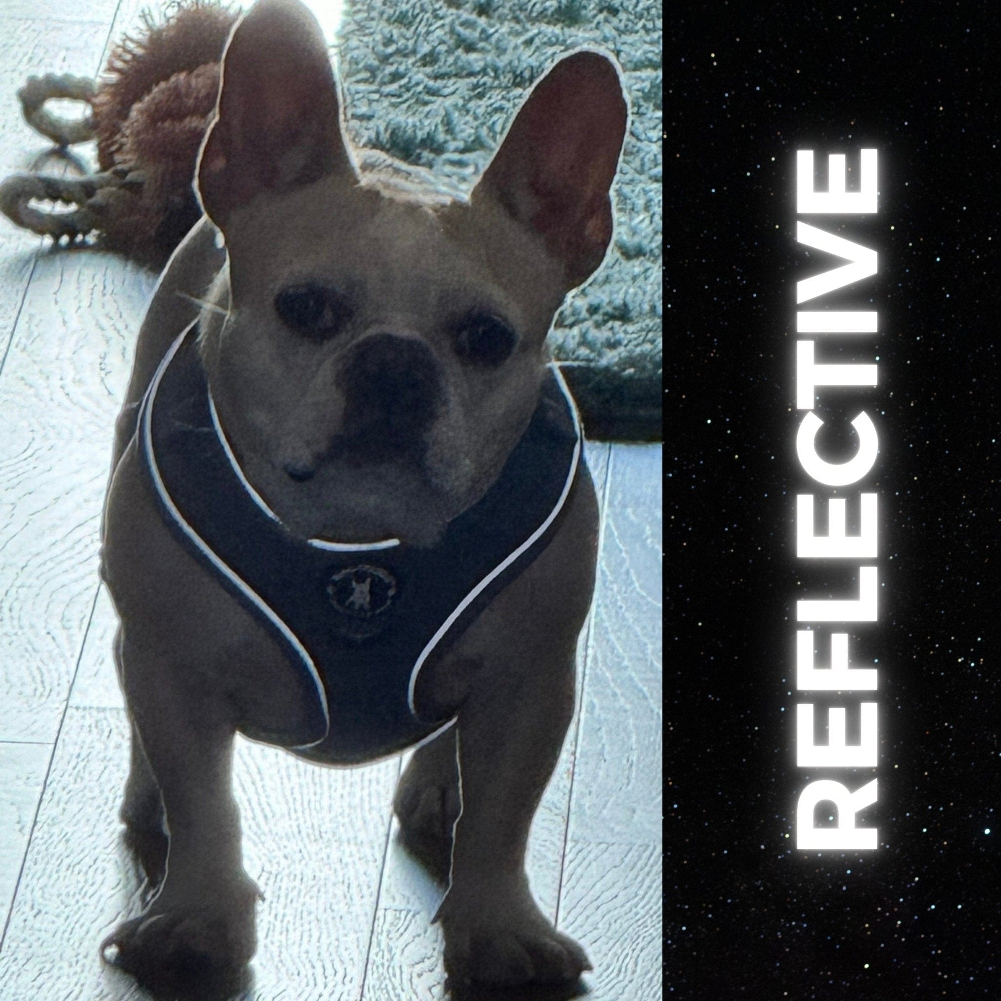 The harness, adorned with all-around reflective piping, ensures visibility and safety during low-light conditions, making every walk a safe adventure. Its urban street style design adds a touch of sophistication to your dog's wardrobe. Functional and fully adjustable, the soft dog harness features a back leash attachment and a front clip for effective no-pull training. Additionally, the harness is enhanced with four reflective strips around the chest for increased visibility.