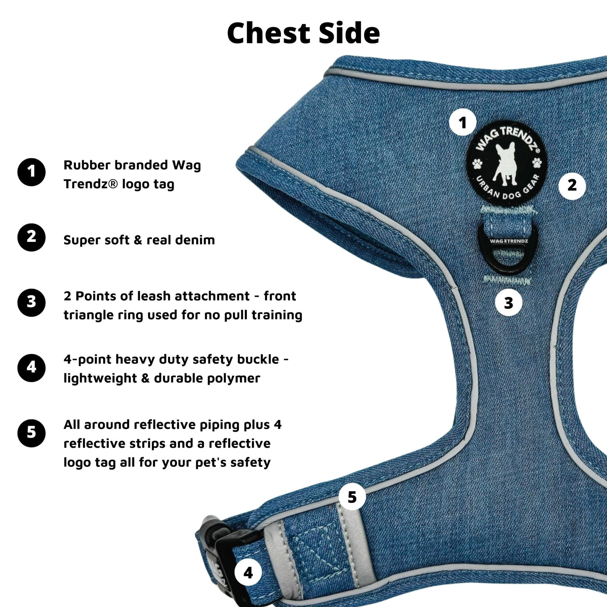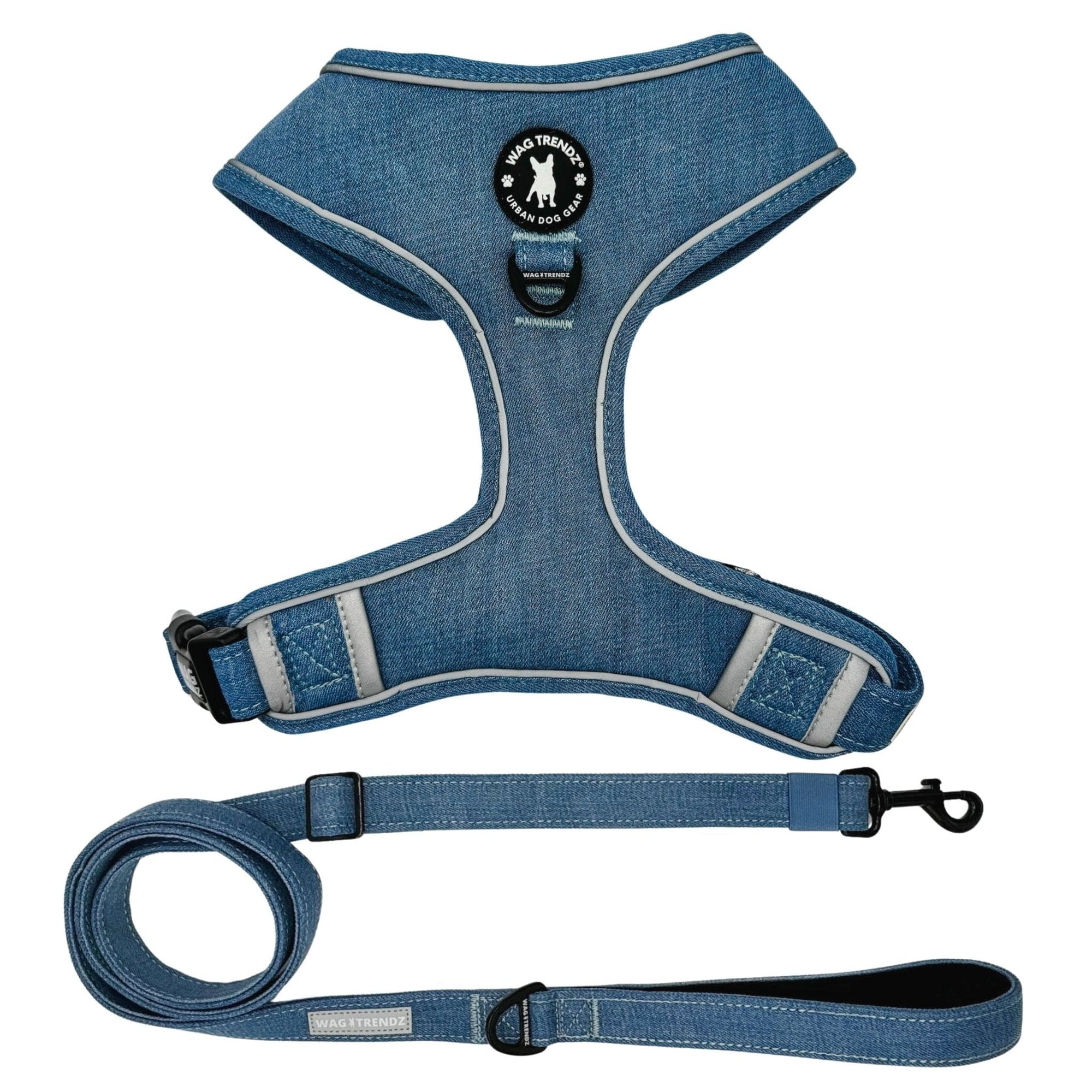 Step out in style with the Dog Harness and Leash from the Downtown Denim Collection, where high-quality street denim meets canine fashion.