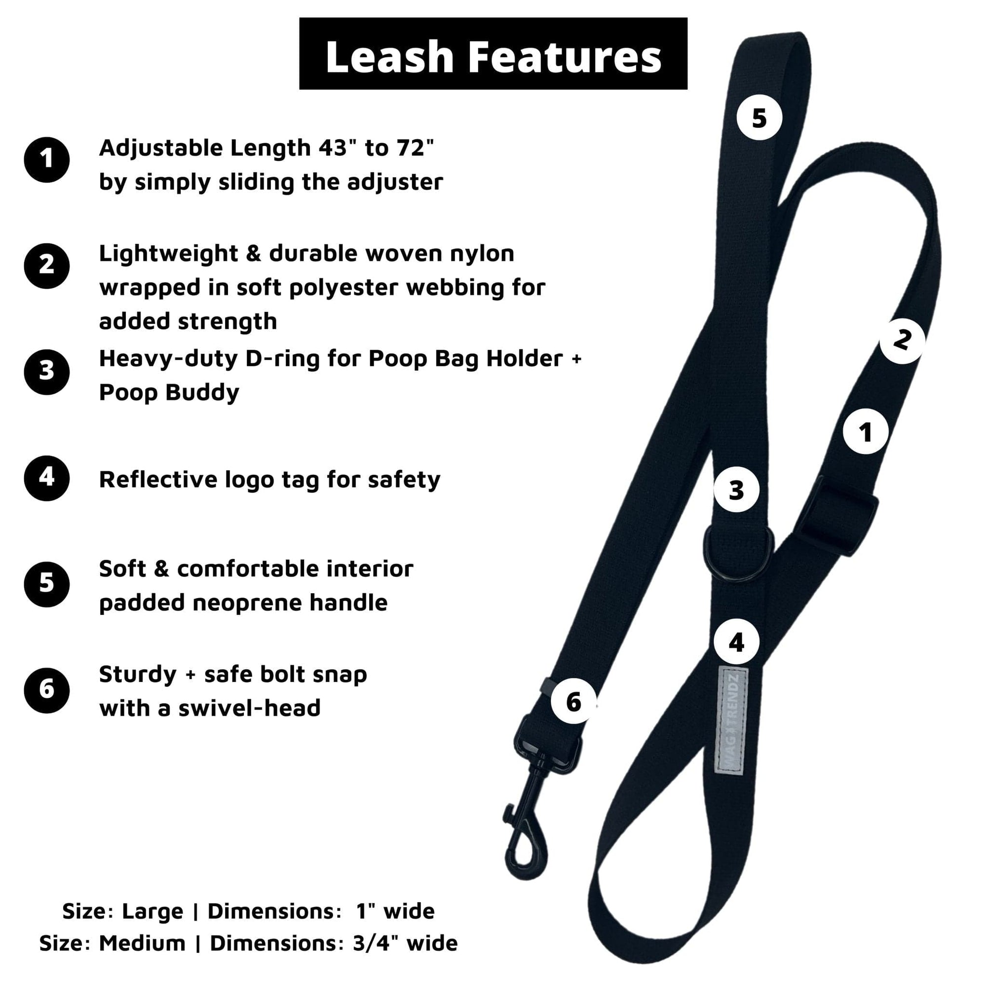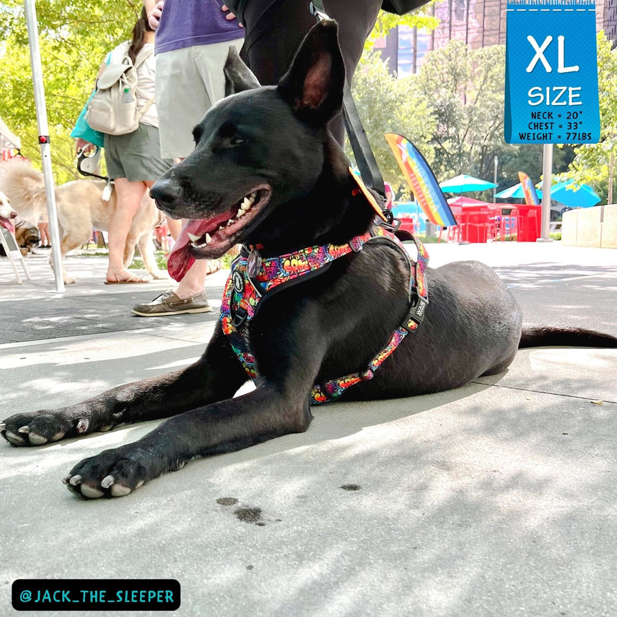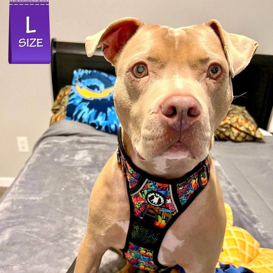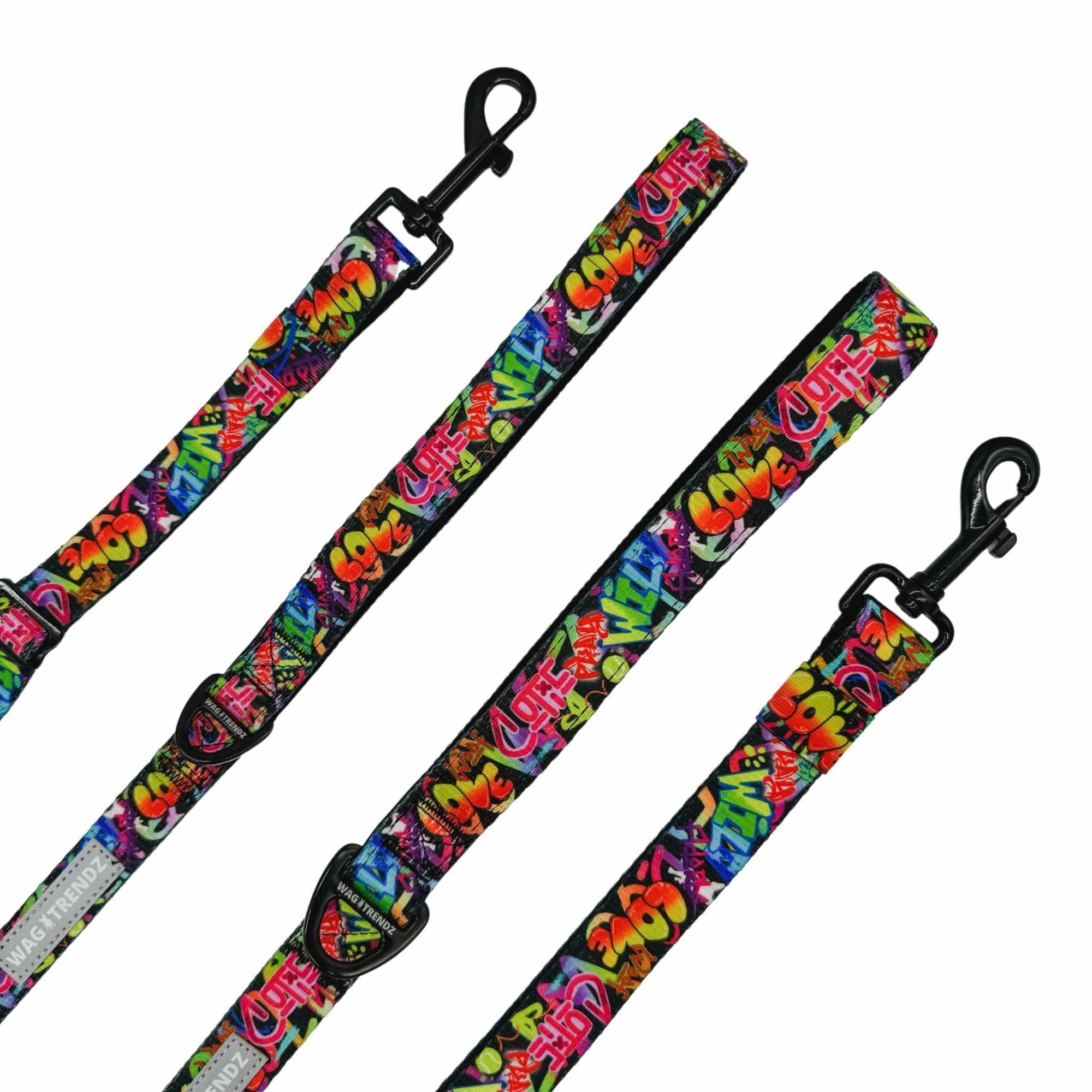 The unique Streetstyle Graffiti design is inspired by the urban graffiti art scene and features bold and colorful graphics that pay homage to the beloved canine companion. The reflective piping on the harness ensures visibility and safety during low light conditions. The set comes with a matching adjustable leash, perfect for daily walks or adventures with your pup. The woven nylon leash is lightweight yet strong, with a heavy-duty clip for safety and an additional D-ring for holding your poo bag holder and a poop buddy for used poop bags.