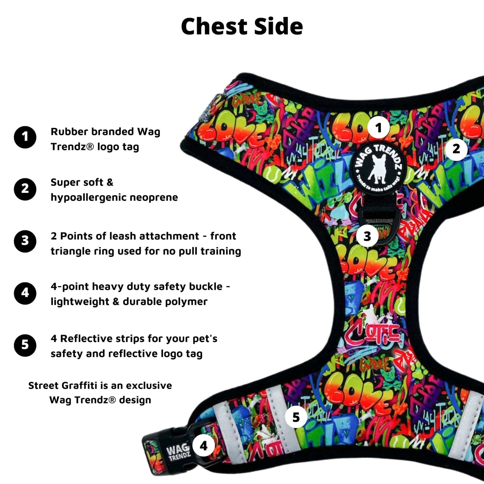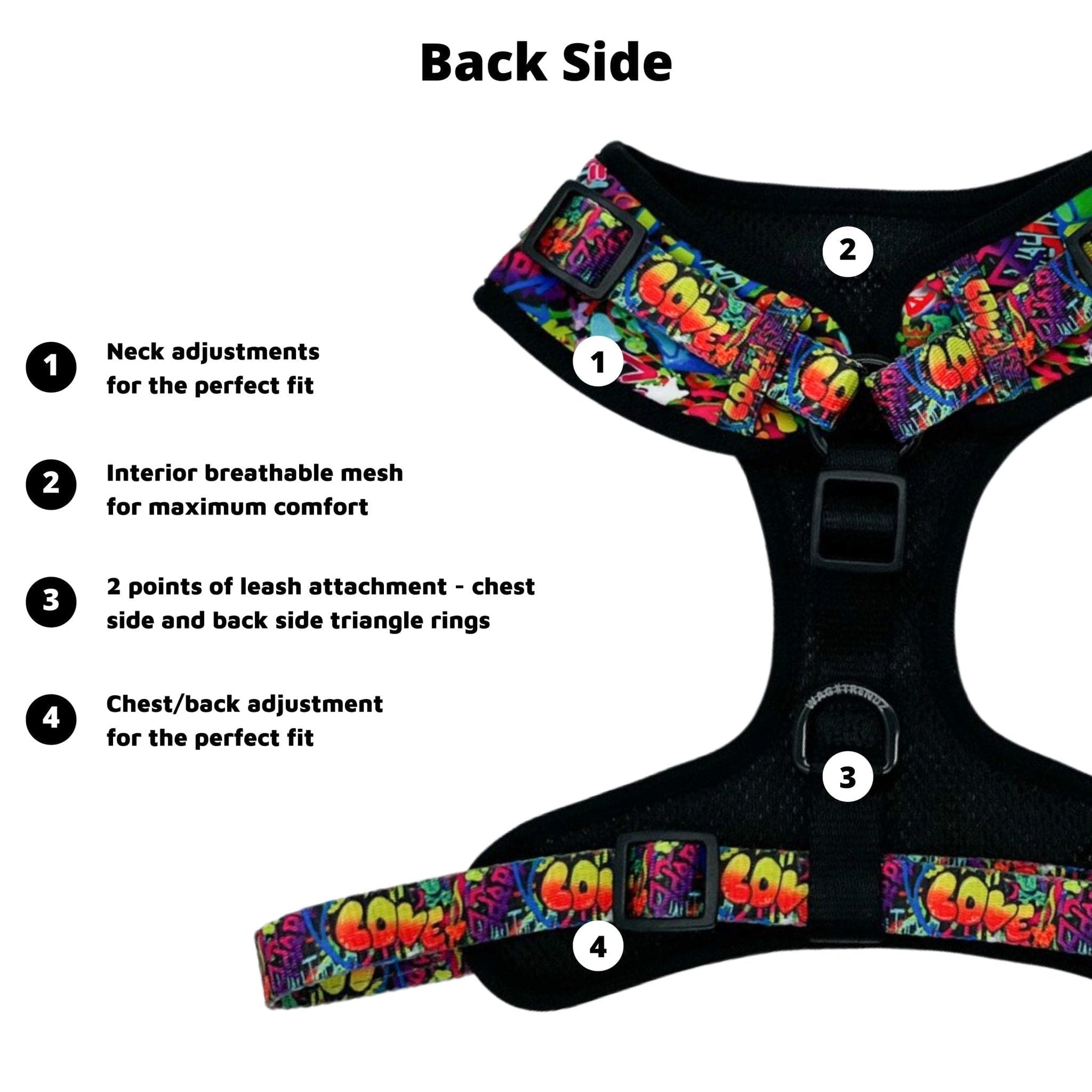 Elevate your dog's style game with the Street Graffiti No Pull Dog Harness!