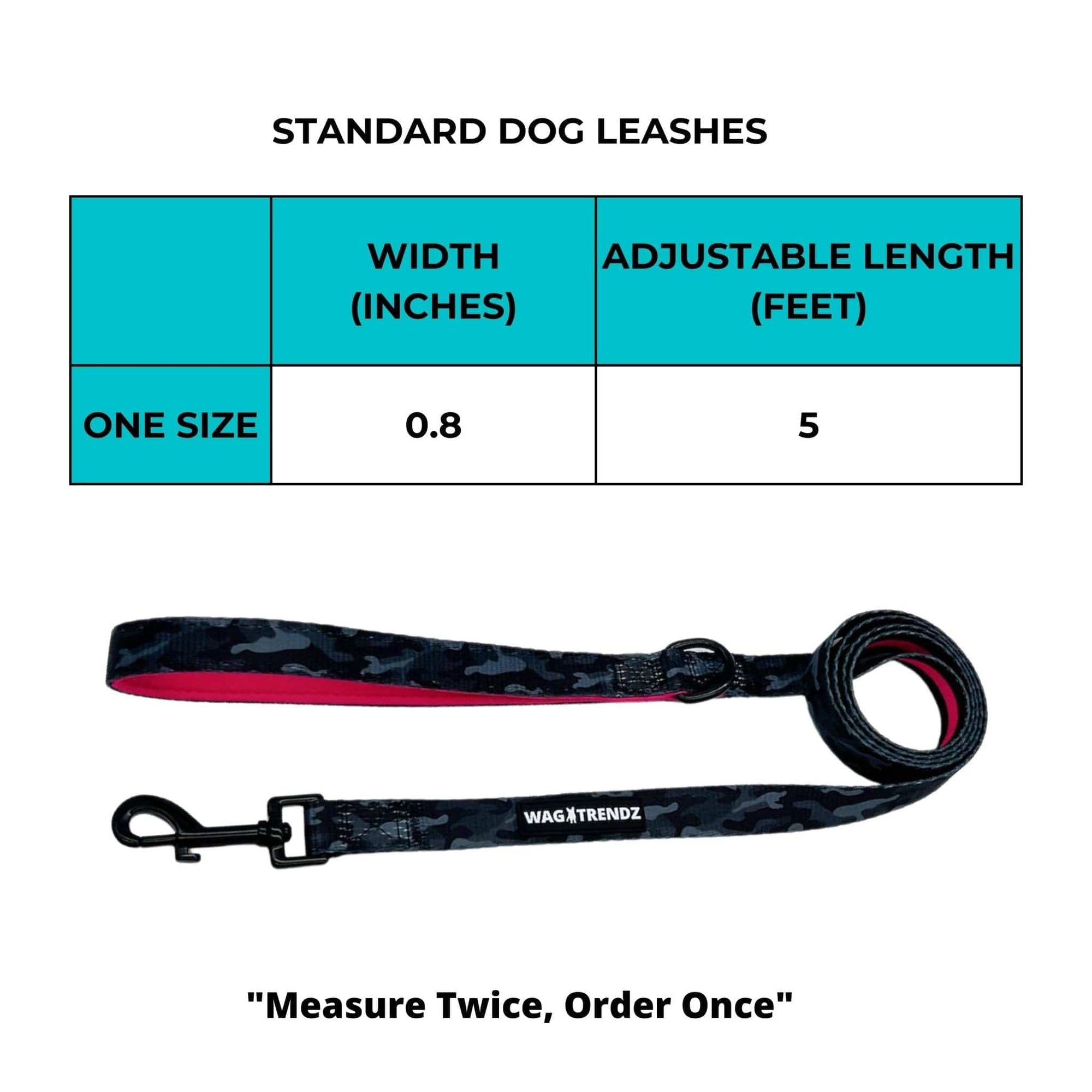 Complete the look with matching dog collar, no pull dog harness, H harness, and poo bag holder, for a coordinated and fashionable ensemble. Give your dog the stylish edge they deserve with the Nylon Dog Leash from the Camo Chic (SHēk) Collection!