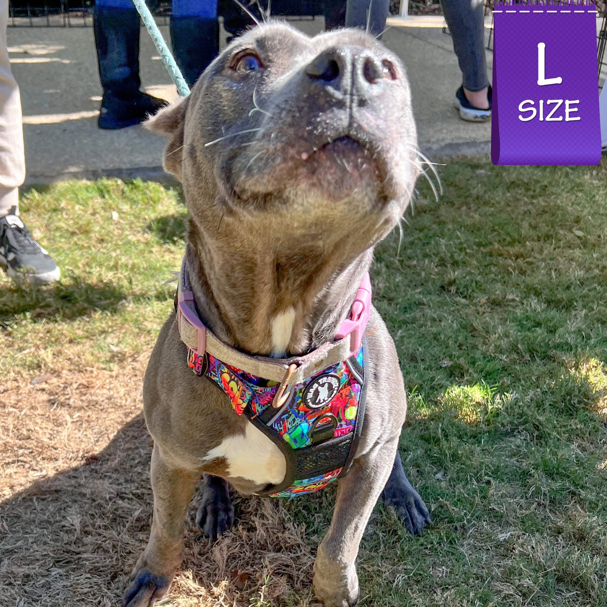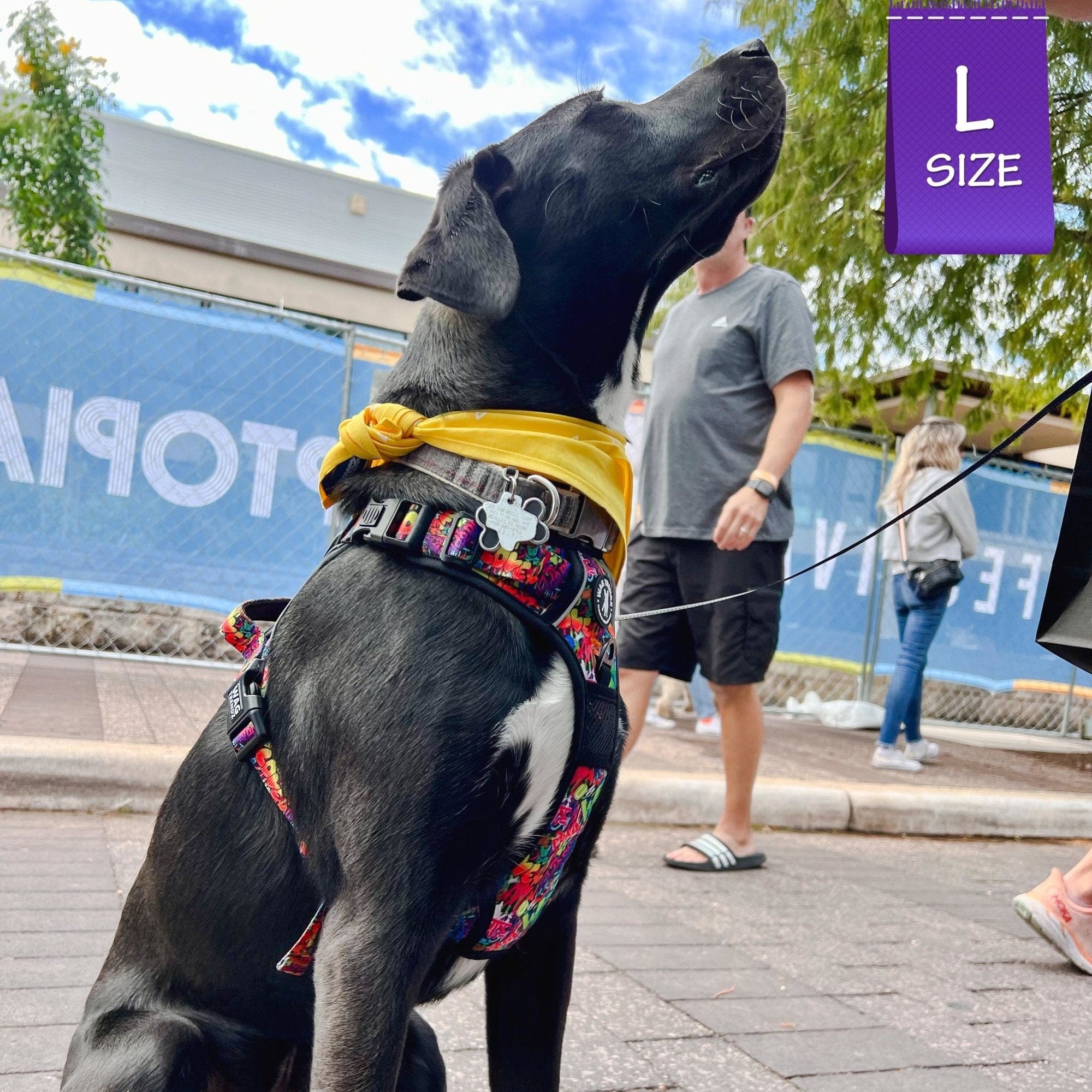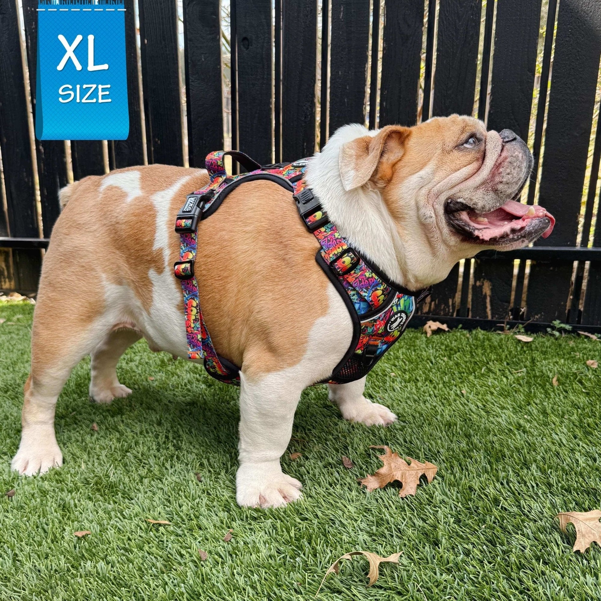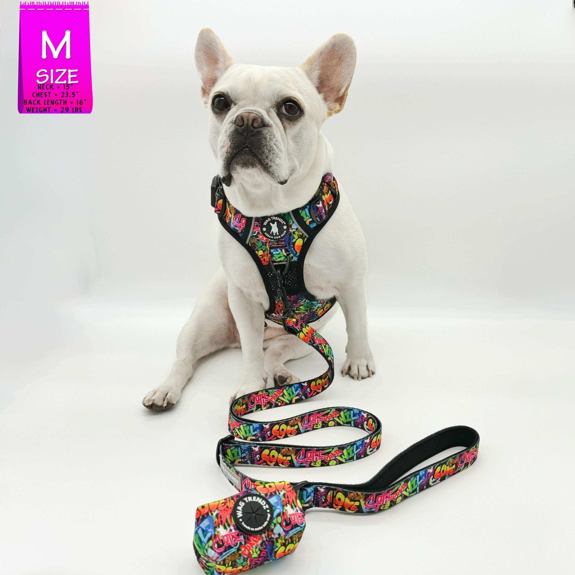 Putting on and taking off the harness is a breeze, thanks to its chest and neck buckles, making it especially ideal for dogs that dislike things going over their heads. The Streetstyle Graffiti edition takes your dog's urban streetstyle to a whole new level, combining fashion with safety and comfort. The exclusive dog graffiti design in the Street Graffiti Collection is inspired by the love for dogs.