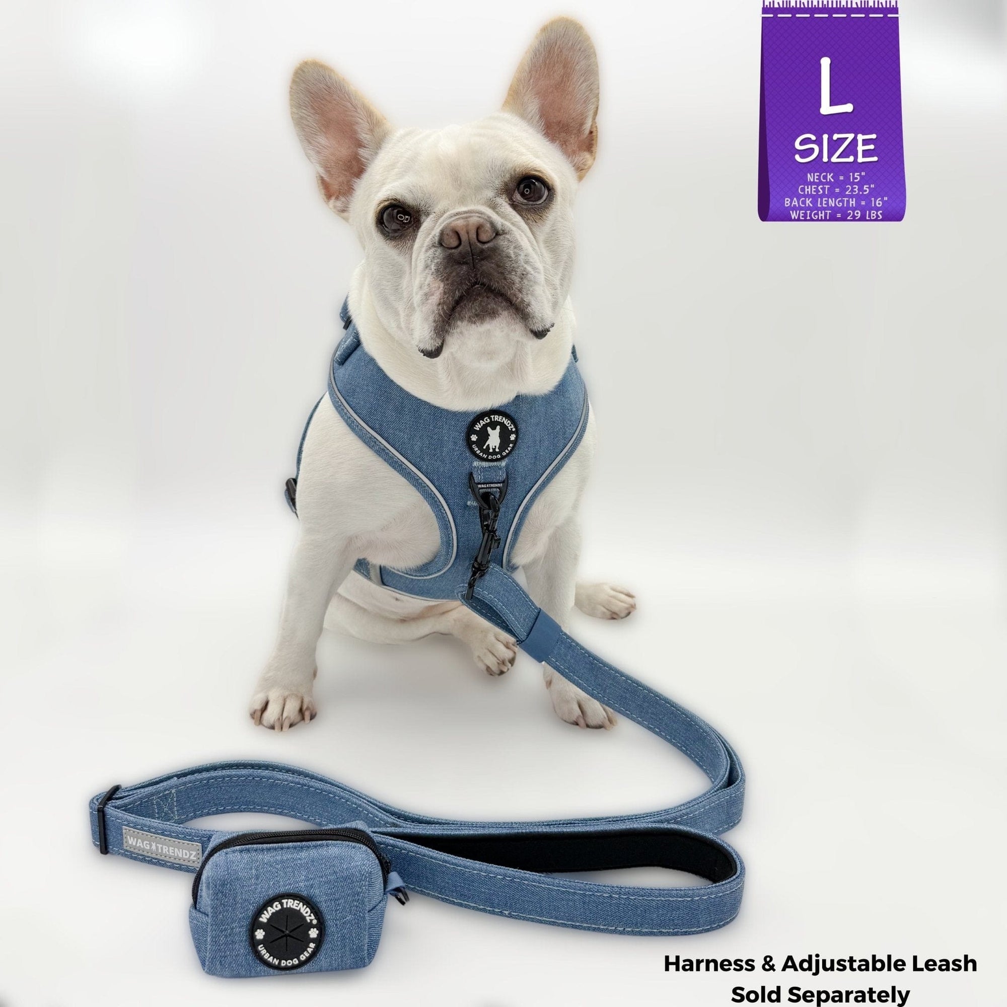 Pair it with the matching denim dog harness, no pull harness with handle, and adjustable denim leash from the Downtown Denim Collection for a coordinated, street-style ensemble that's as functional as it is fashionable.