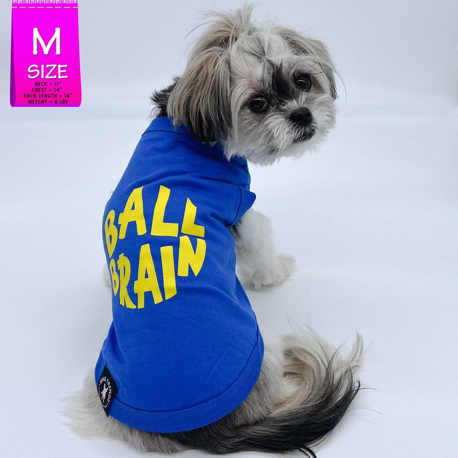 Don't miss out on the opportunity to add some fun and humor to your dog's wardrobe with the Ball Brain dog t-shirt.