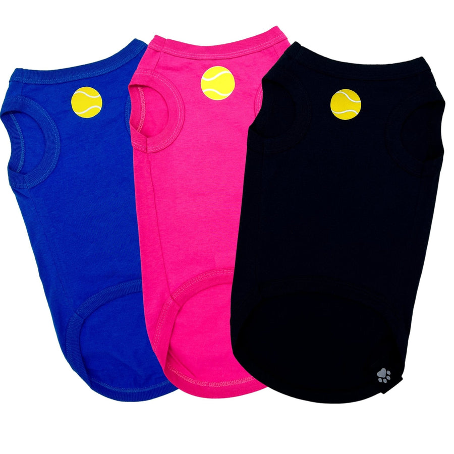 Available in black, blue, or pink, this t-shirt is designed to showcase your pup's love for their favorite toy.