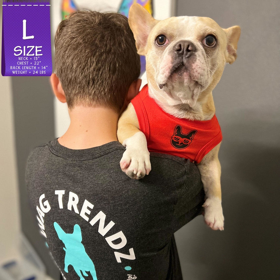 Available in red or black, this trendy tee is perfect for all breeds and sizes of dogs. Made with breathable material, your pet will stay comfortable and stylish no matter where they go. The ribbed trim ensures a flexible fit, while the Wag Trendz® hem tag shows everyone that your dog is part of the cool crowd.