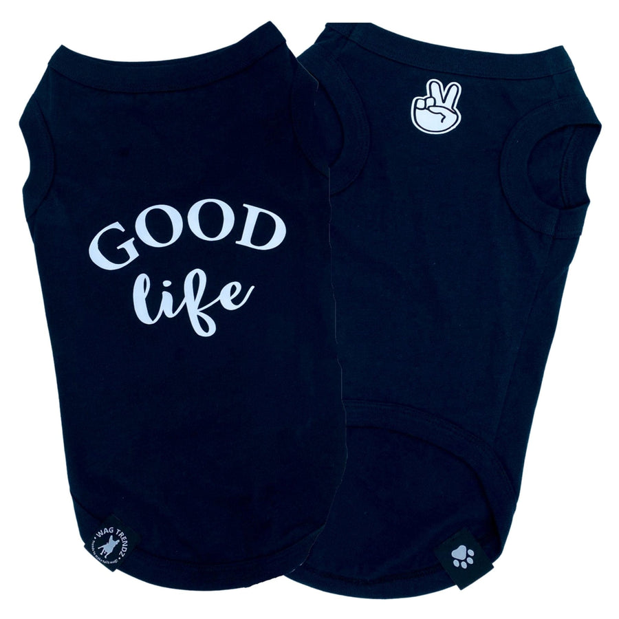 Each "Good Life" dog t-shirt comes with a Wag Trendz® hem tag, so your furry friend can show off their fashionable style and be part of the pack. Let your dog represent the Good Life proudly with this exclusive design, inspired by happy and content dogs everywhere.  Order yours today!