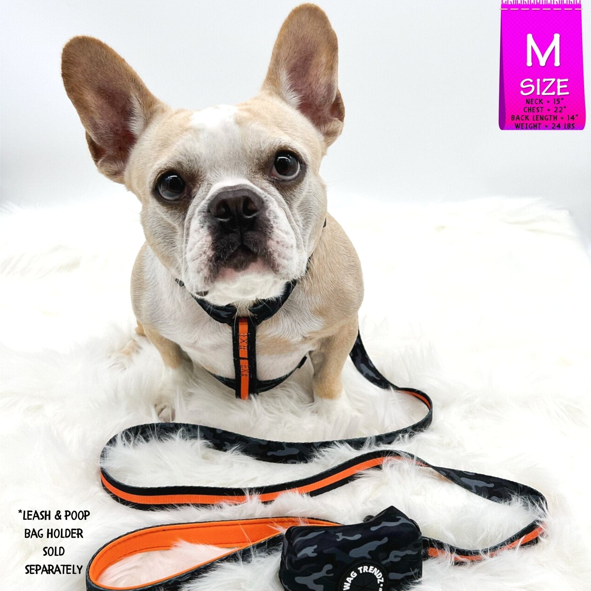 The inspiration behind the Camo Chic (SHēk) Collection stems from trendy street-fashion, offering a relatable yet edgy pattern for your beloved companion. With a vibrant pop of orange, Camo Chic emerges as a bold and eye-catching statement. Wag Trendz® believes in standing out, and with this collection, your dog is sure to make heads turn.