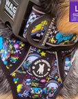 • Fully adjustable neck and chest straps made from soft & durable woven nylon in custom prints (see size chart for perfect fit)