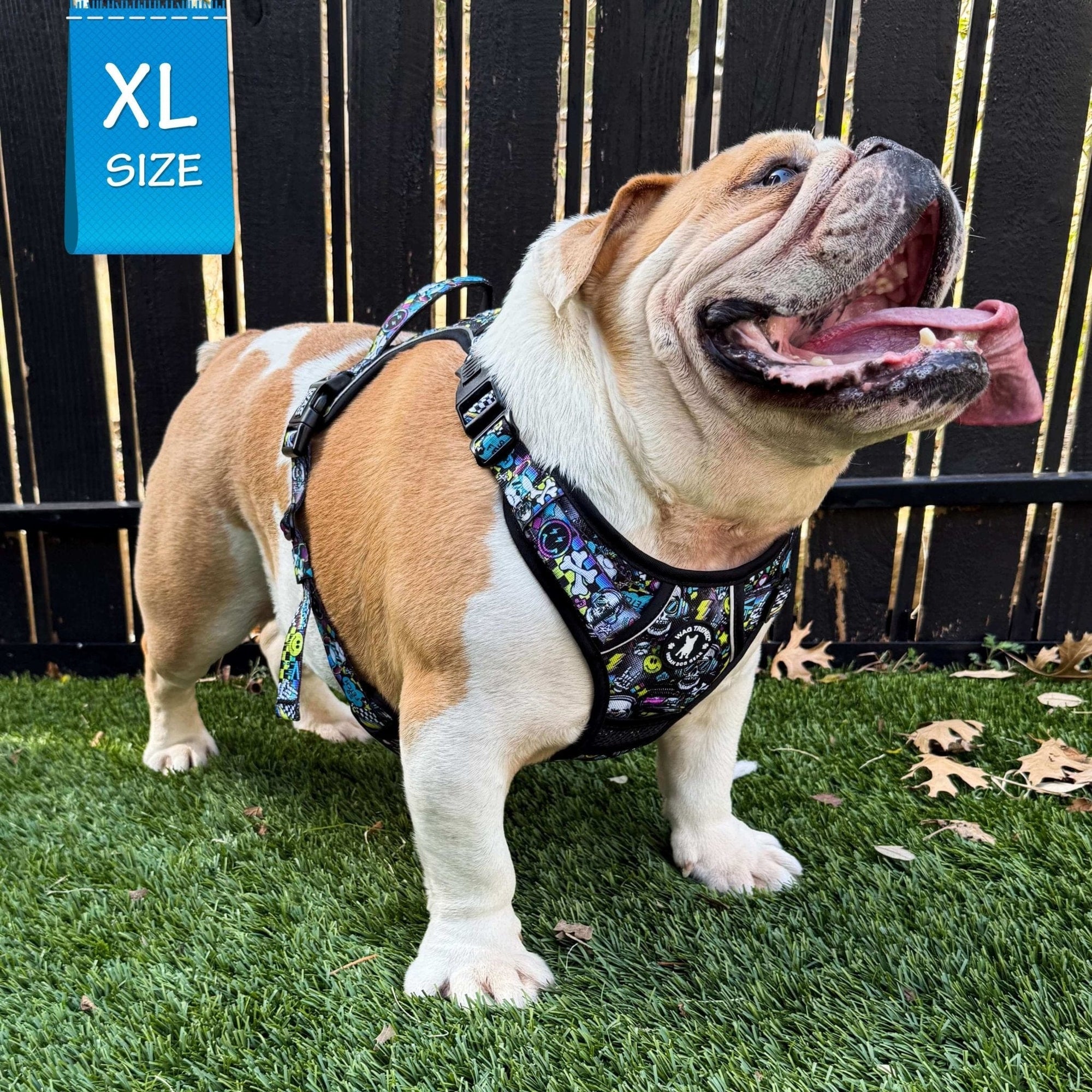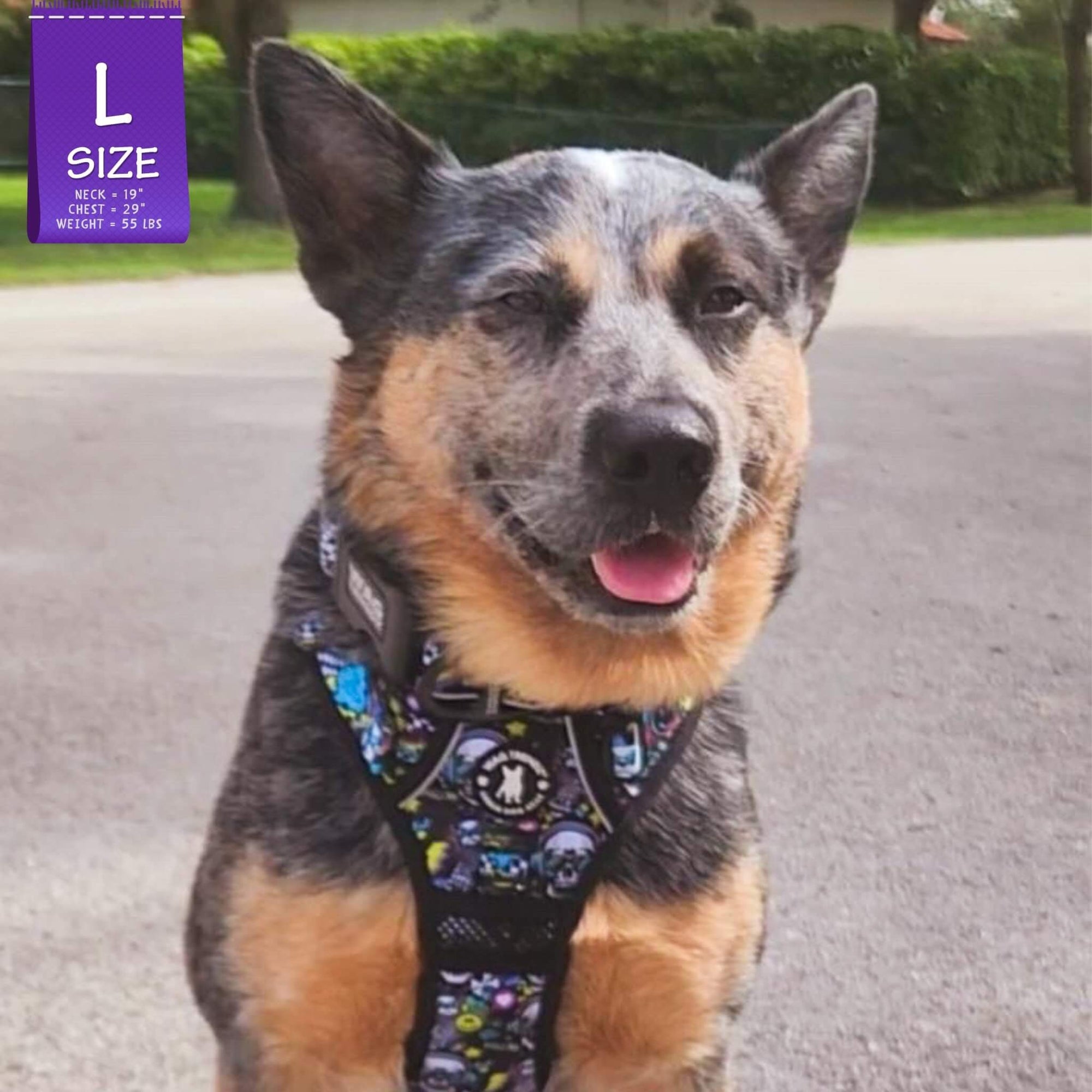 Experience the No Pull Dog Harness with Handle from the Skull Society Collection—a groundbreaking solution in dog control and training.