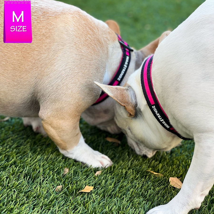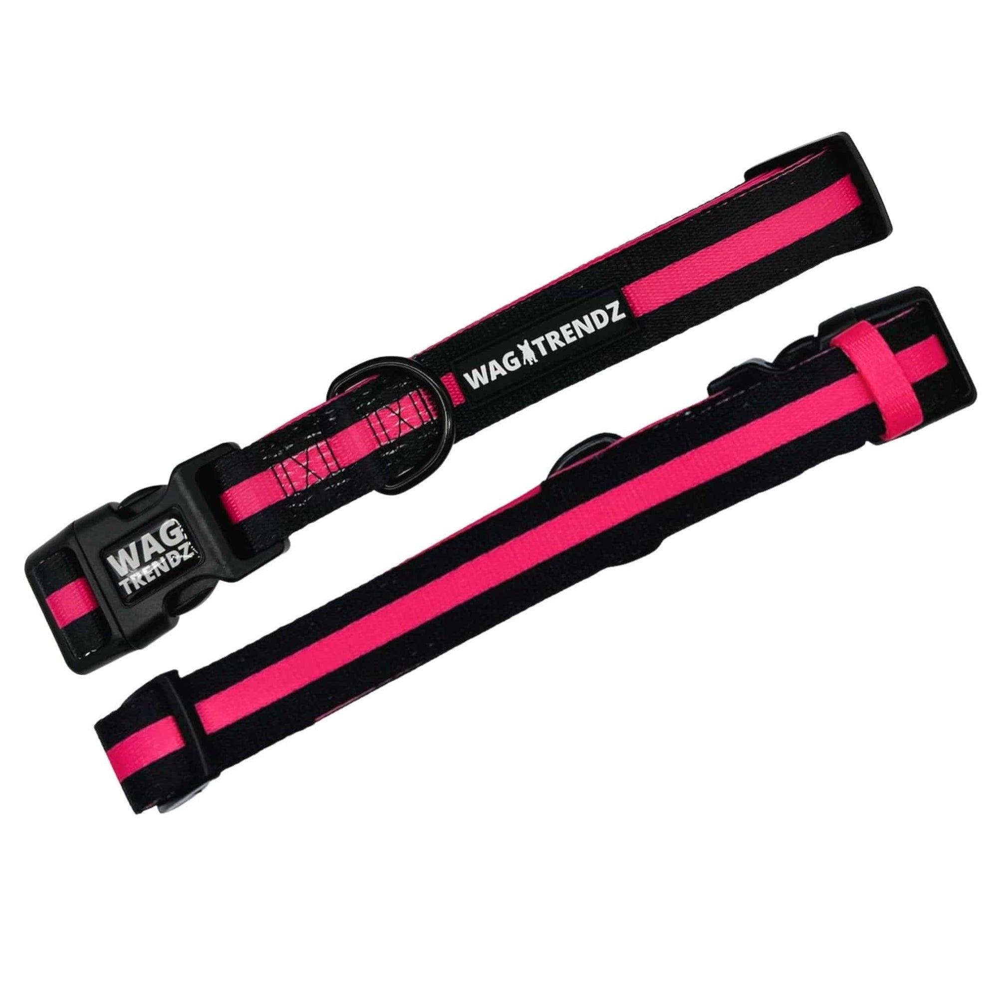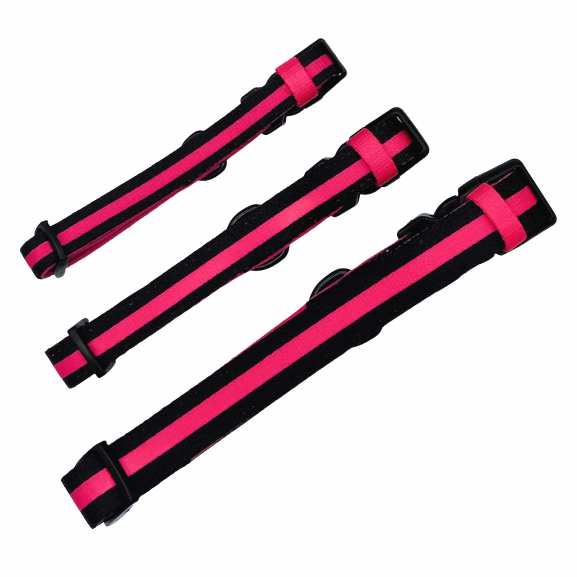 So if you're looking for a collar that's both fashionable and functional, the Nylon Dog Collar in solid black with a hot pink bold stripe is the perfect choice for your pup.