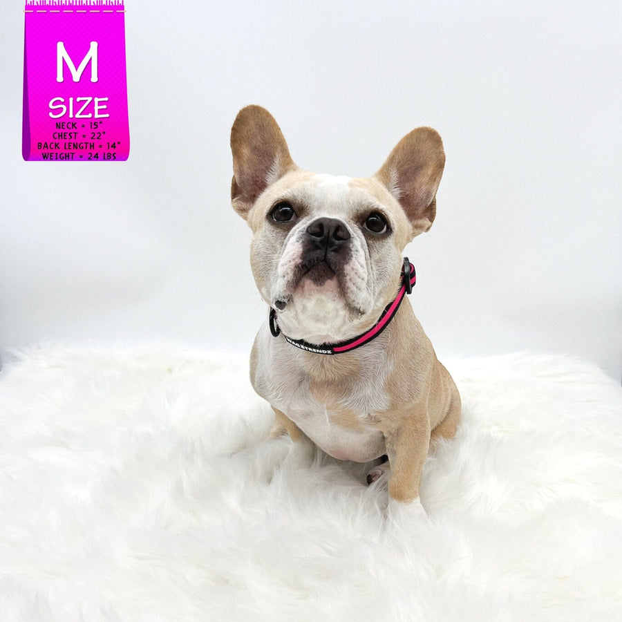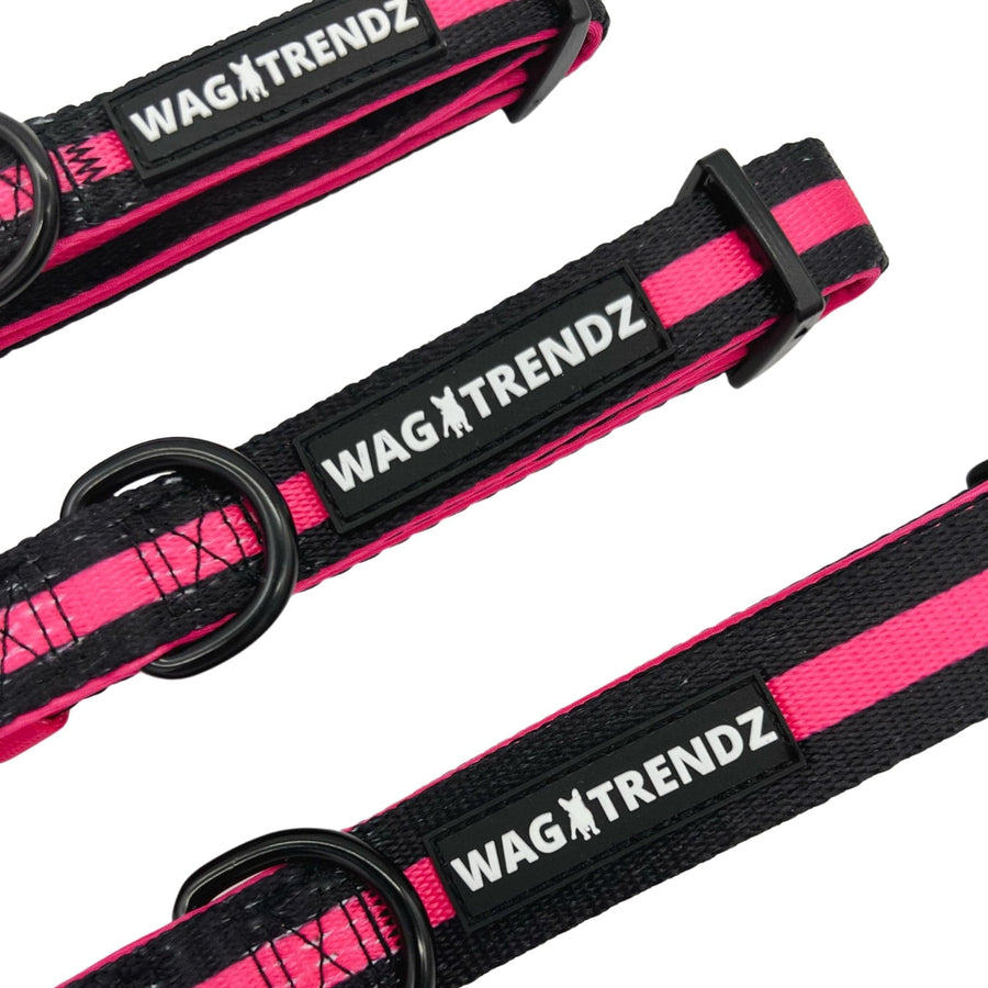 Made with high-quality materials, this collar is both sophisticated and stylish, with a sleek black design and eye-catching hot pink stripe. It's the perfect accessory to elevate your dog's look, while still being practical for everyday wear.