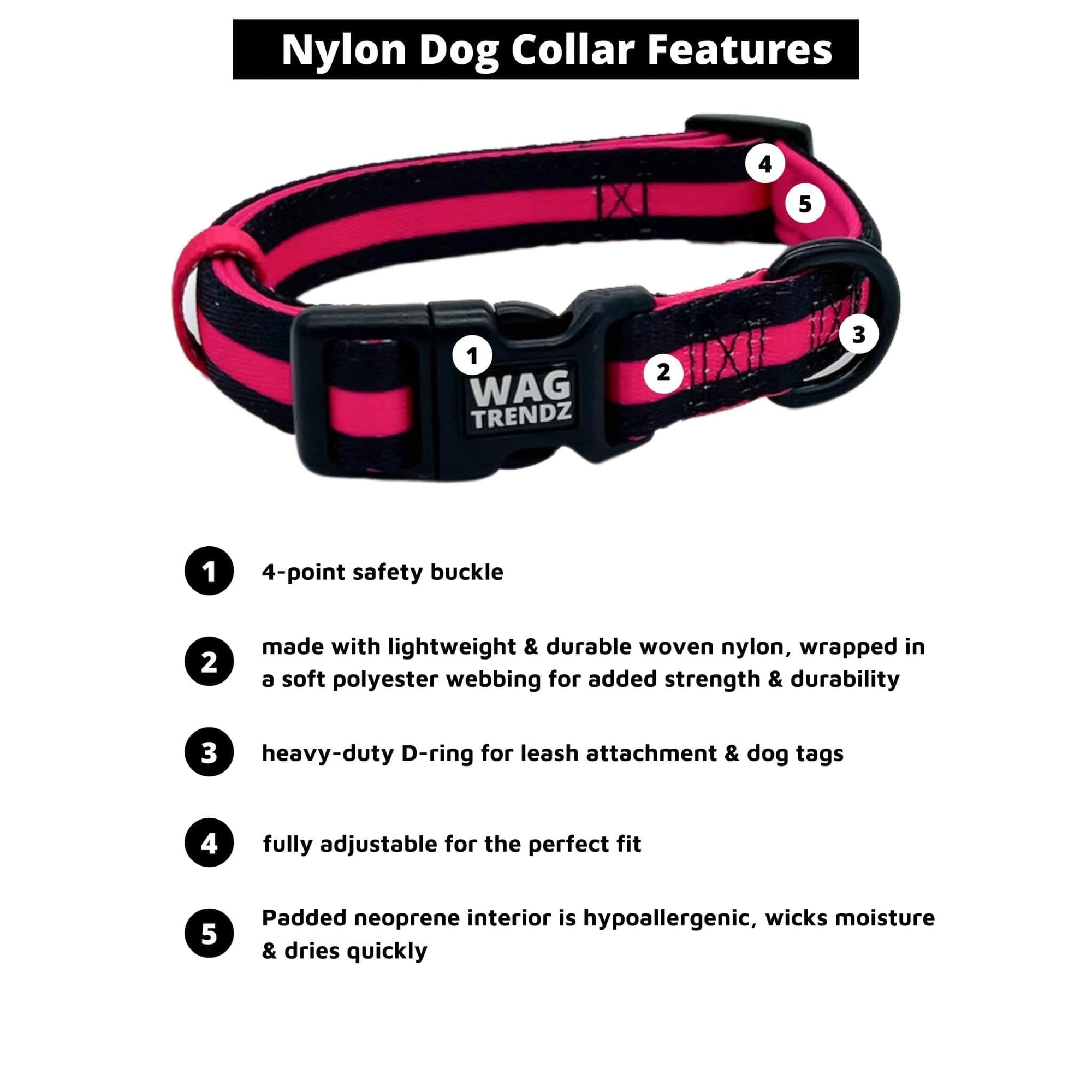 • Wag Trendz® branded heavy-duty buckle for safety
