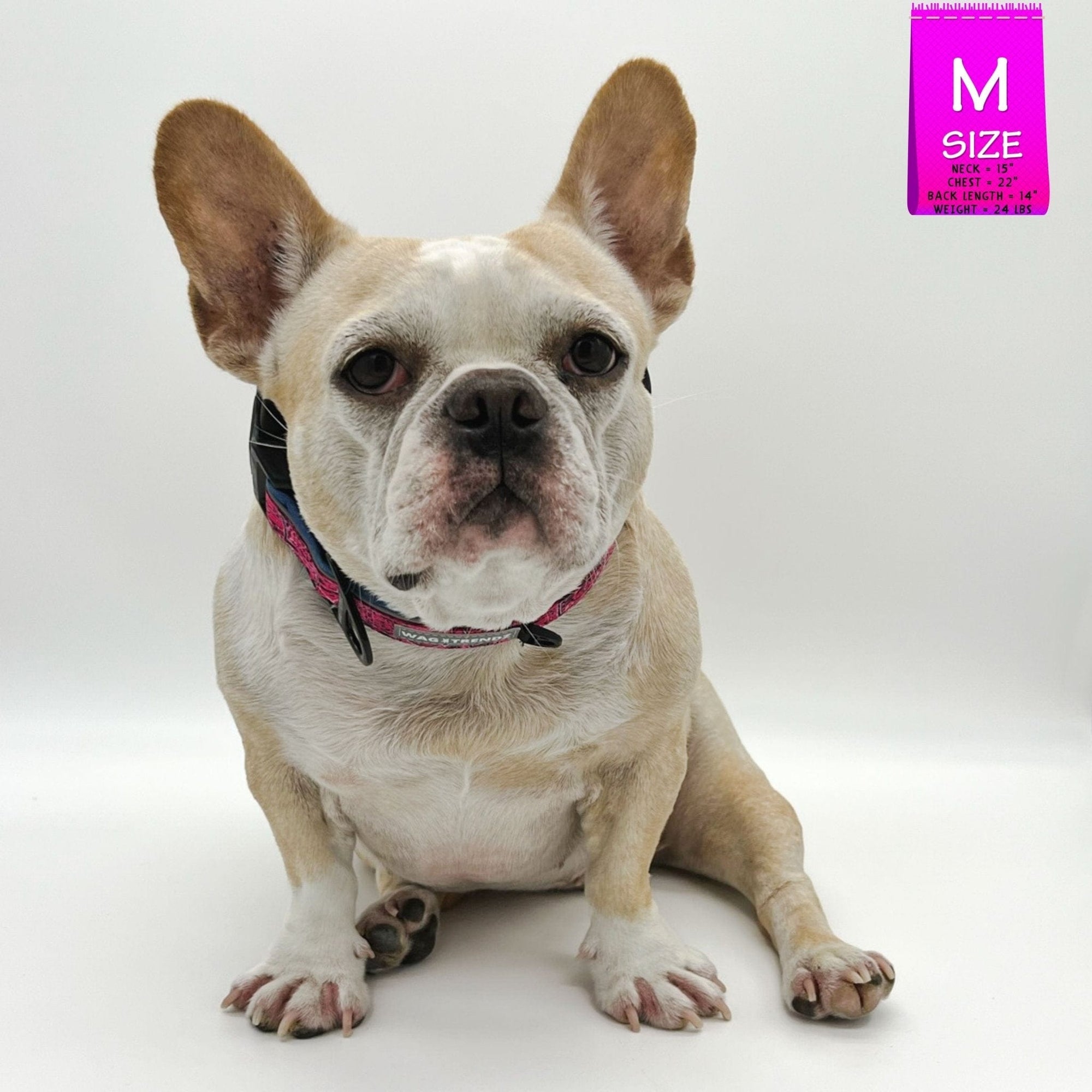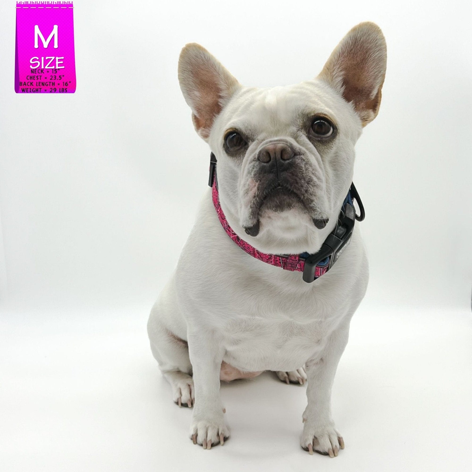 Please refer to the Size Chart button above for sizing accuracy and dog model sizes for comparison. An image of the size chart is also available in the photos above.