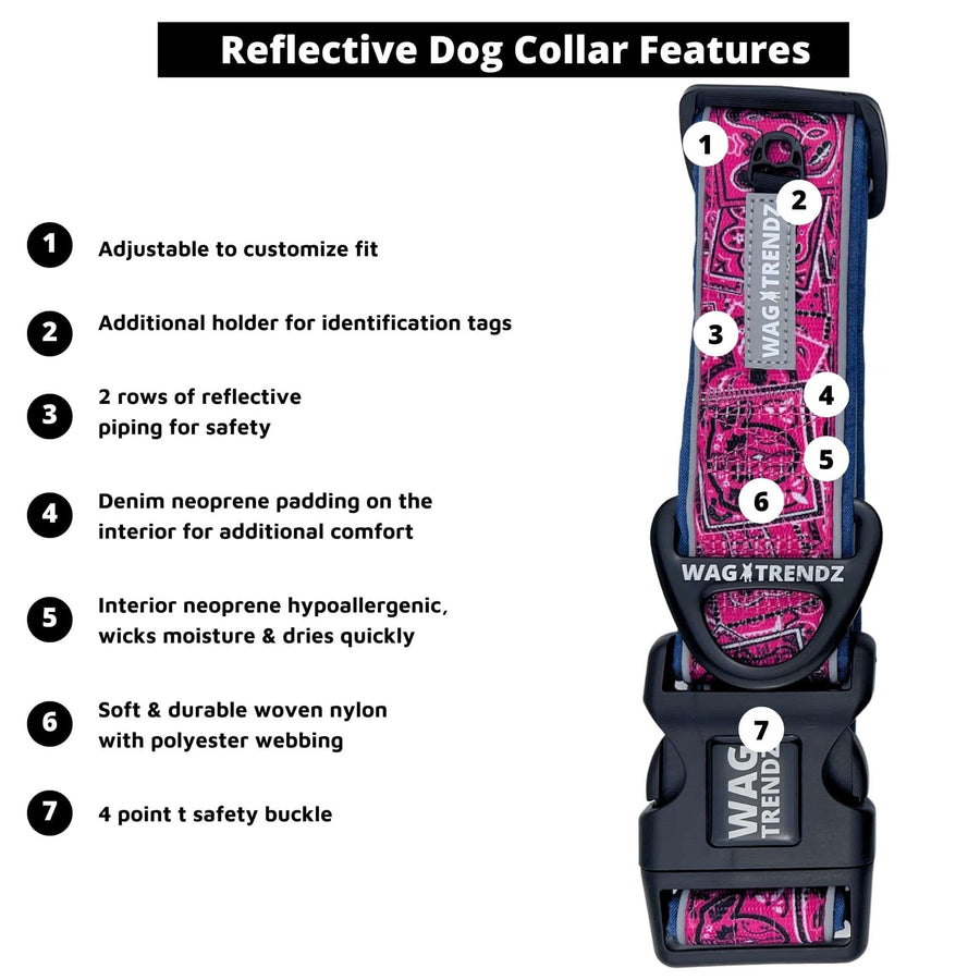 Reflective Dog Collar - Bandana Boujee - Hot Pink