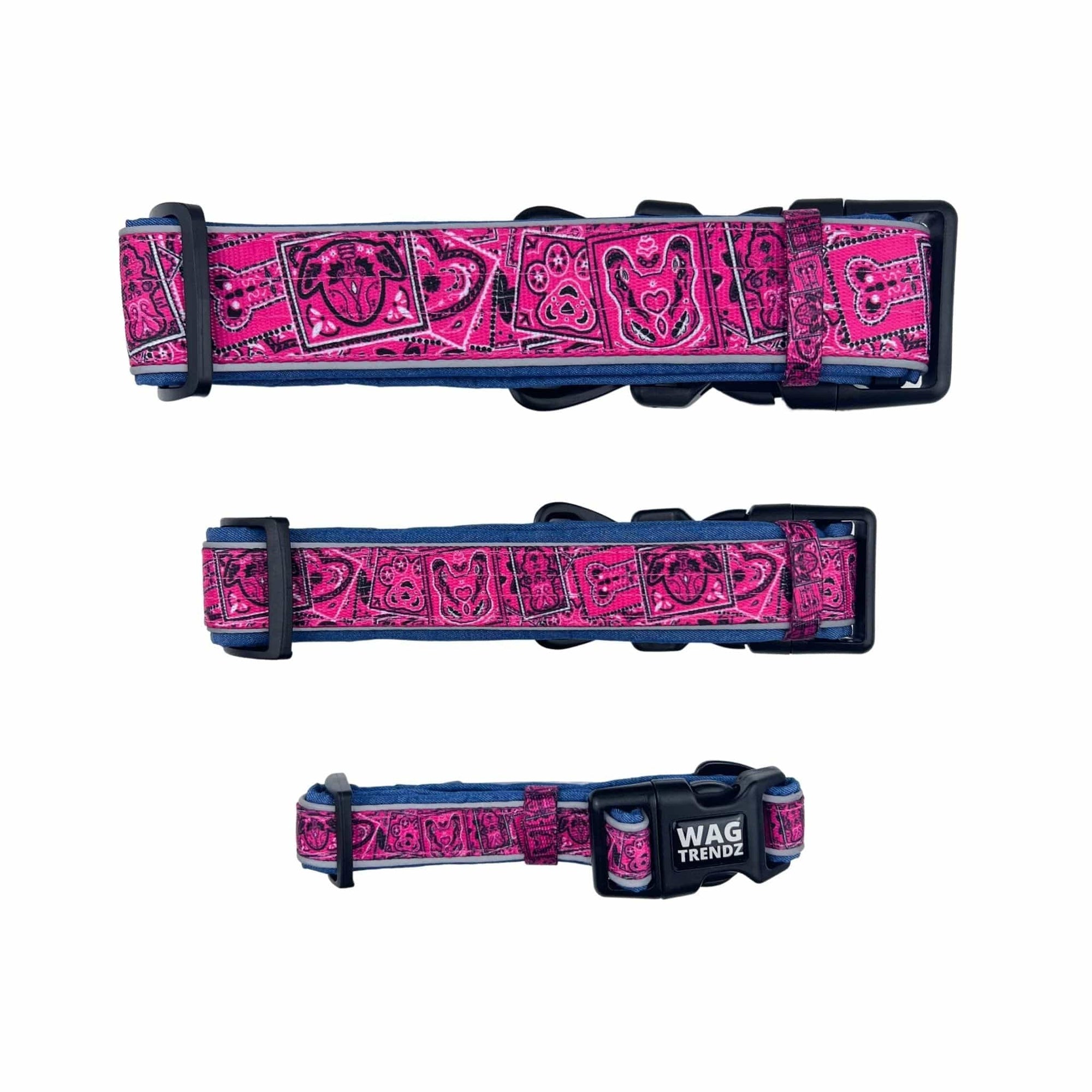 The Bandana Boujee Reflective Dog Collar in hot pink is the ultimate blend of street fashion and classic bandana with a canine-inspired twist.