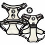 For the most accurate size for your pet, measure the chest just behind the front legs which should be the widest part of your dog's mid-section with a cloth tape measure. Measure your pet's neck at the base (where a collar would sit). You want the cloth tape to be snug but not tight for both the chest and the neck. If you don't have a cloth tape measure, a piece of string, yarn, or thin rope will work and then measure with a rigid ruler afterwards. A good rule of thumb, is measure with enough room for two fingers widths between your pet's chest and the measuring device for maximum comfort.