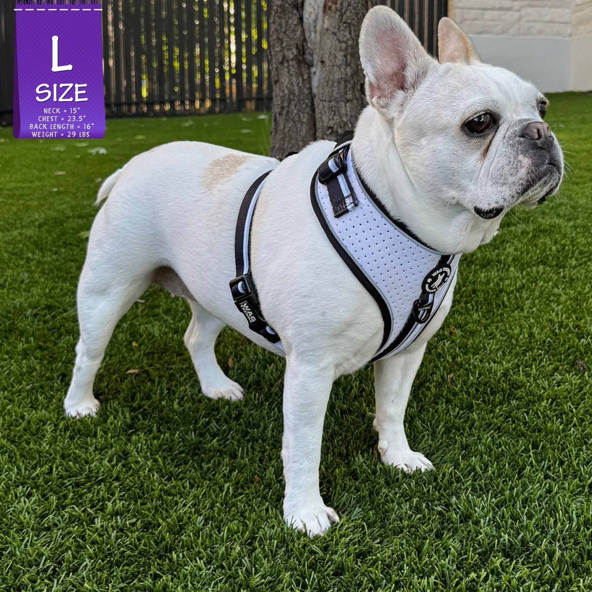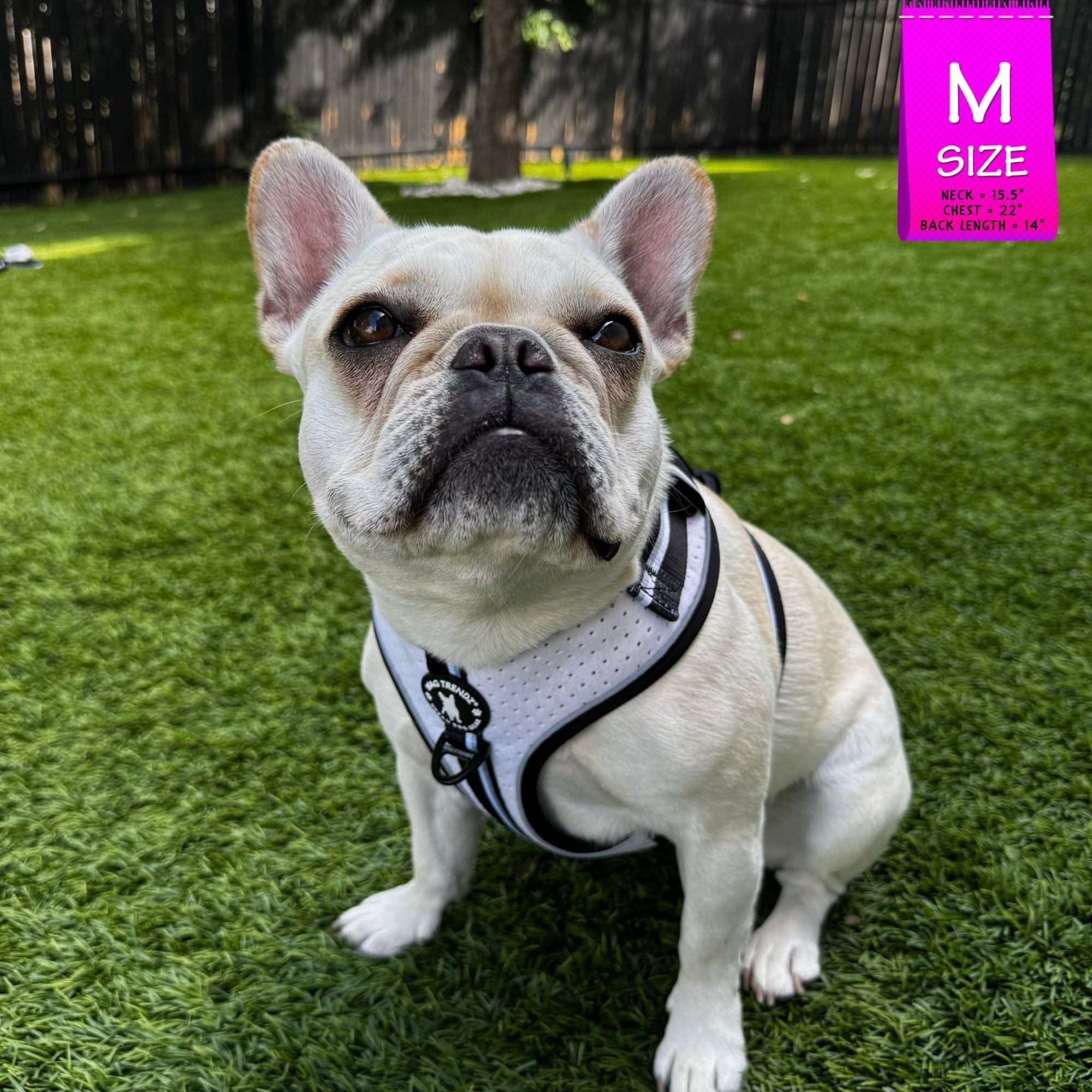 Inspired by real customer feedback, this patent-pending harness was built for heat-sensitive breeds like French Bulldogs, English Bulldogs, Boston Terriers, and Pugs - and for active dogs who need breathable comfort on every adventure.
