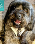 For the most accurate size for your pet, measure the chest just behind the front legs which should be the widest part of your dog's mid-section with a cloth tape measure. Measure your pet's neck at the base (where a collar would sit). You want the cloth tape to be snug but not tight for both the chest and the neck. If you don't have a cloth tape measure, a piece of string, yarn, or thin rope will work and then measure with a rigid ruler afterwards. A good rule of thumb, is measure with enough room for two fingers widths between your pet's chest and the measuring device for maximum comfort.
